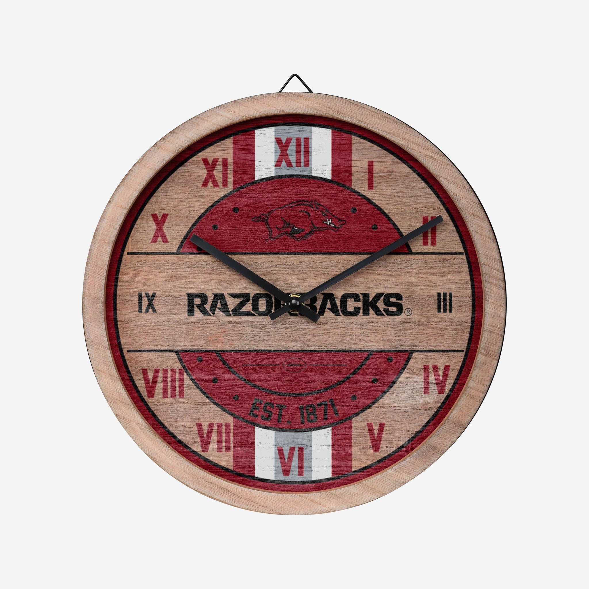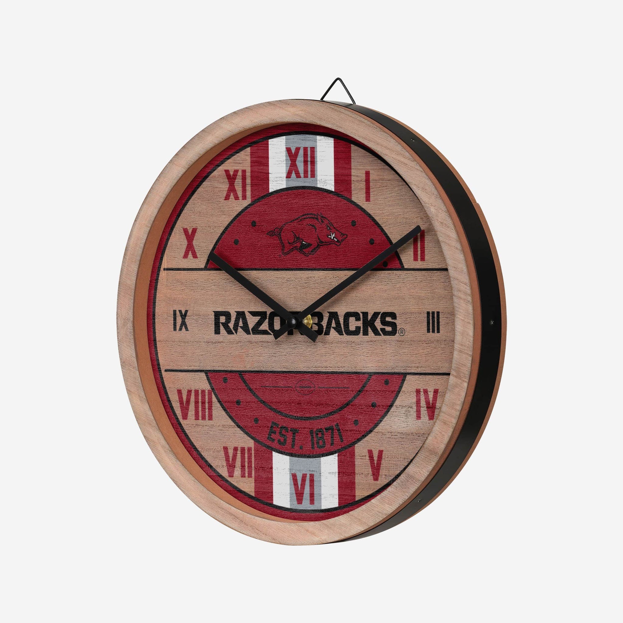 Tick. Tock. Don't let the clock hit zero on your chance to spice up your fancave. This Arkansas Razorbacks Barrel Wall Clock lets you show off your top-notch team spirit, and also tells you what time it is. But let's be honest. We all know it's always game time.