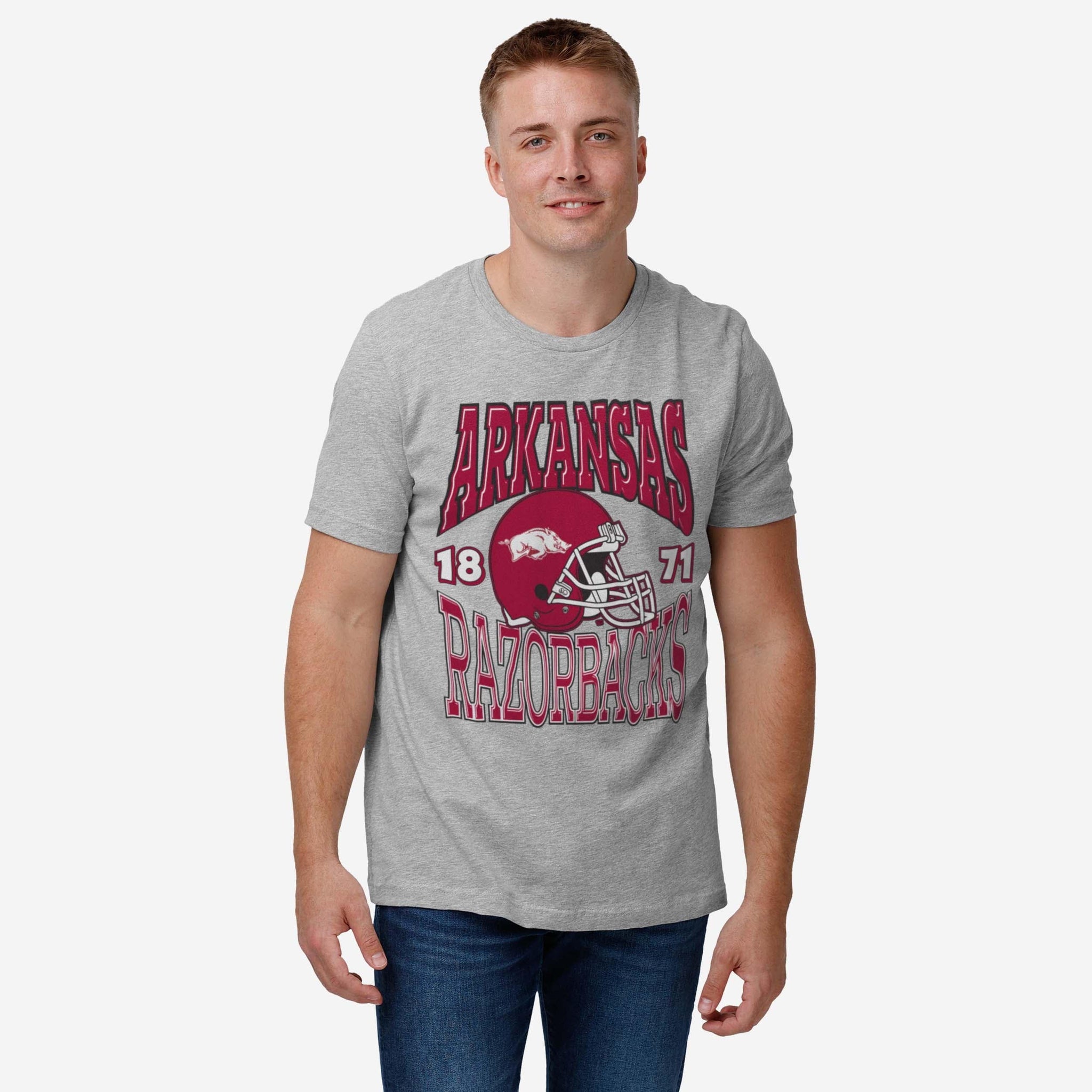 Style worthy of gridiron glory! Whether you’re at the tailgate, in the stands, or watching from the couch, the Arkansas Razorbacks Classic Team Helmet T-Shirt will get your head in the game.
