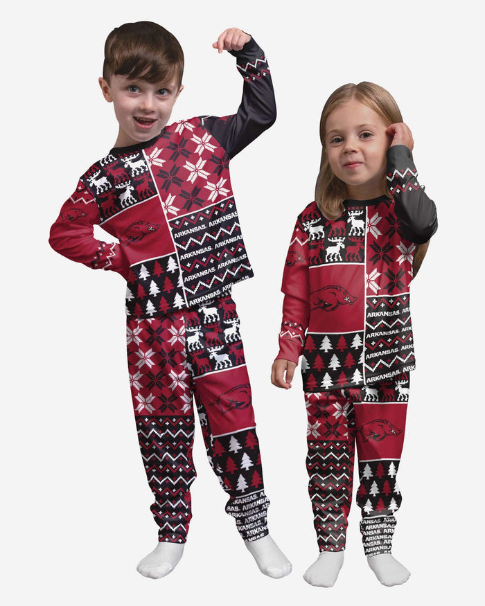 Get some matching family pajamas and dress to impress this holiday season! You won't want to miss these kids' team pajamas! These youth PJ's are comfortable and show off your team spirit in the form of some sweet youth jammies. Introducing the Arkansas Razorbacks Toddler Busy Block Family Holiday Pajamas! Don't forget to take your holiday photo with the whole family wearing matching Christmas pajamas!