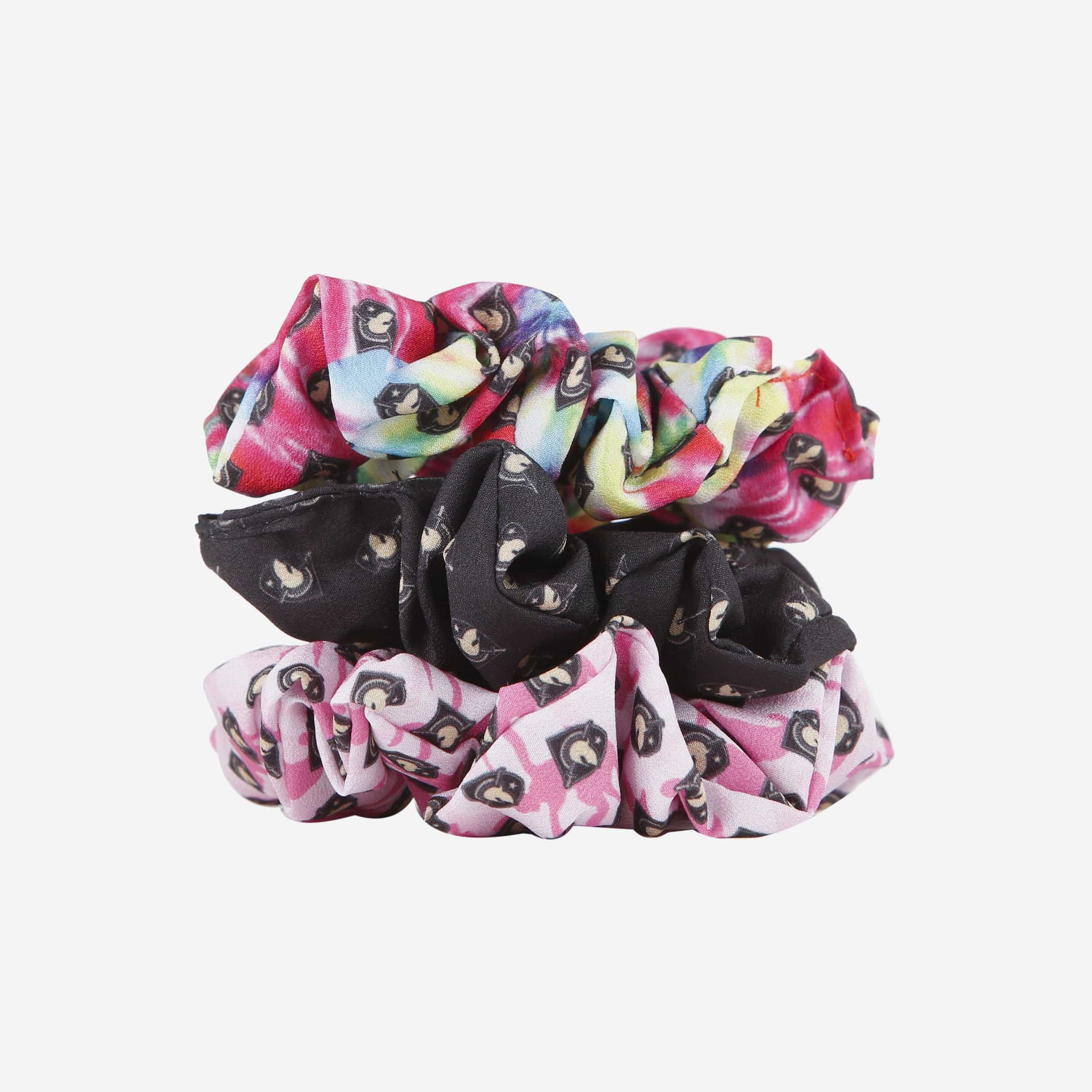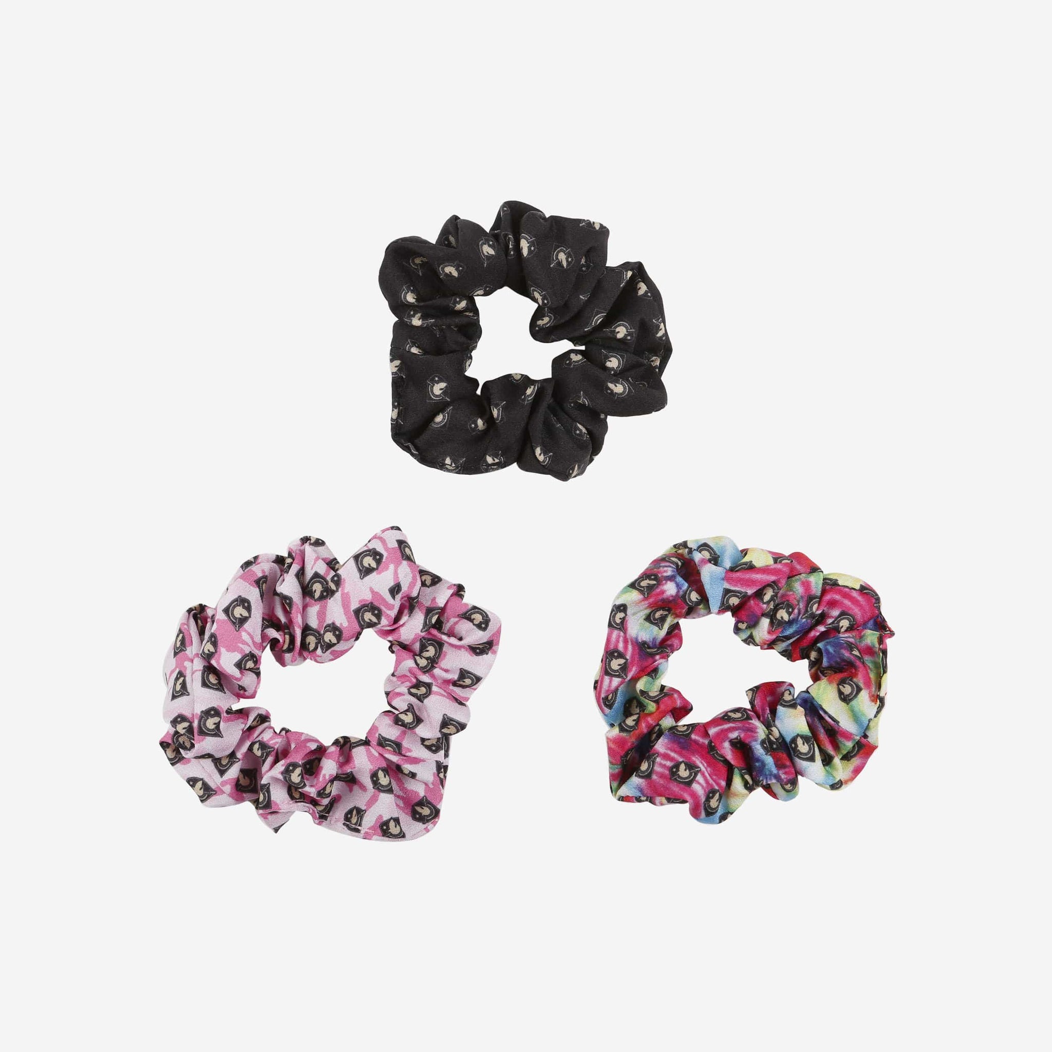 - Three-pack of hair scrunchies with unique designs, because three scrunchies are better than one