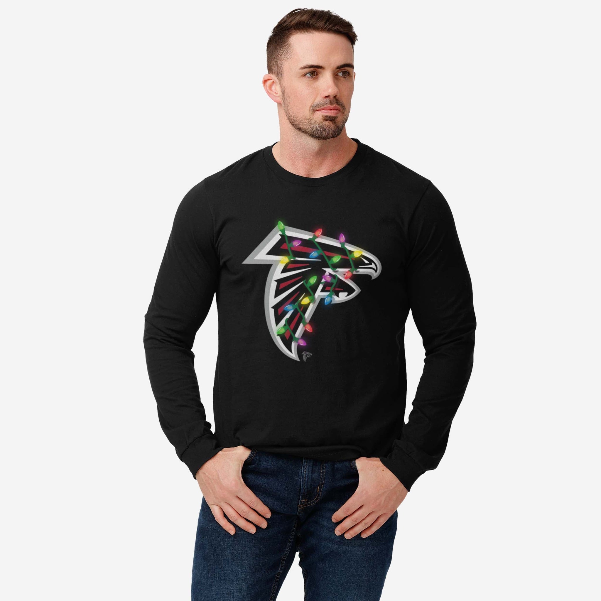 The holidays shine brighter when you’re repping your team! Add some festive fun to your fan fit with the Atlanta Falcons Primary Logo Holiday Lights Long Sleeve T-Shirt.