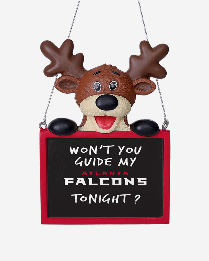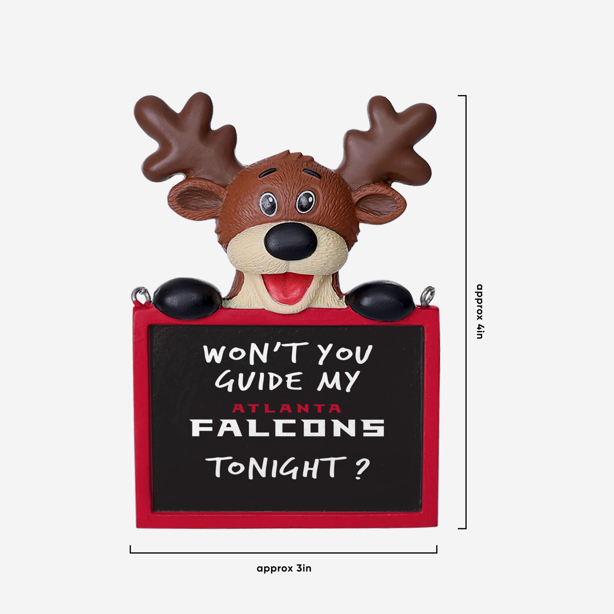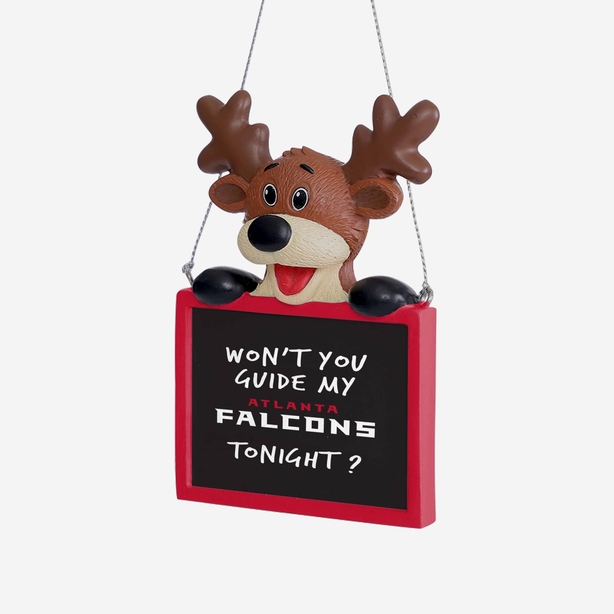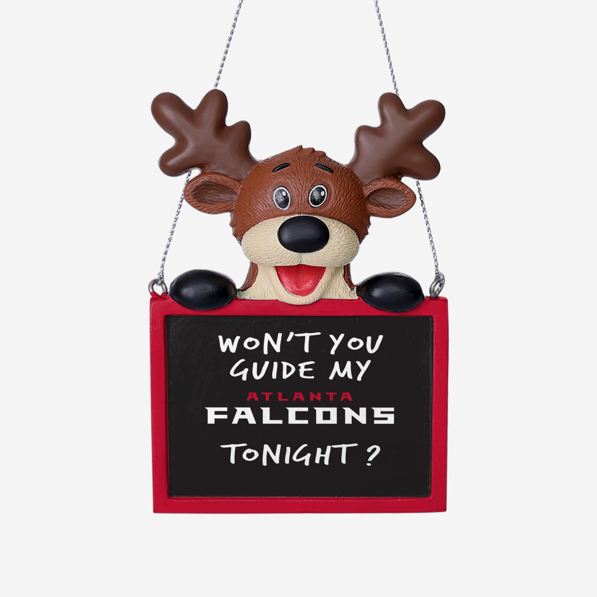Tired: Dasher. Dancer. Prancer. Vixen. Wired: This Atlanta Falcons Reindeer with Sign Ornament.
