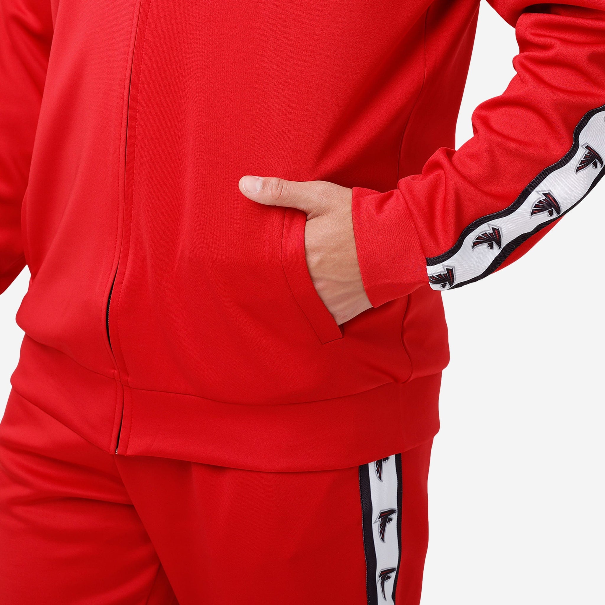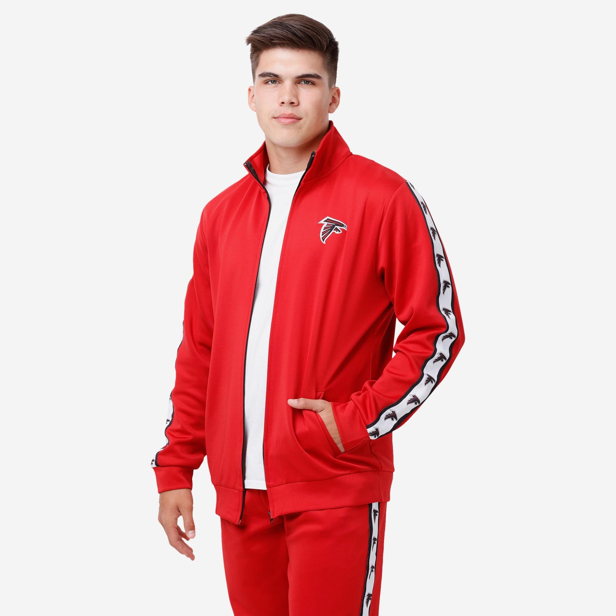 A jacket that you'll be jacked up to wear. Bundle up for your jog around the block with this Atlanta Falcons Stripe Logo Track Jacket.