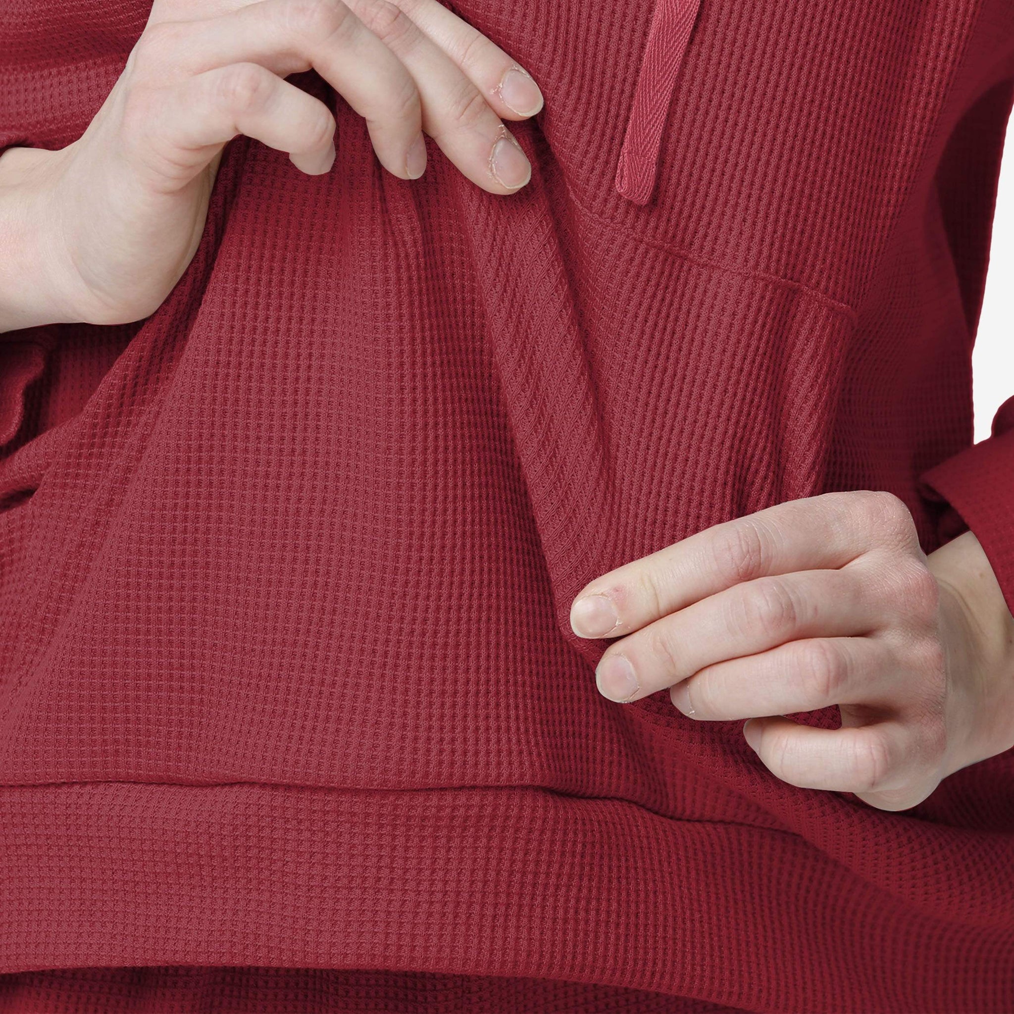 - Durable, waffle-knit sweatshirt construction for warmth and comfort