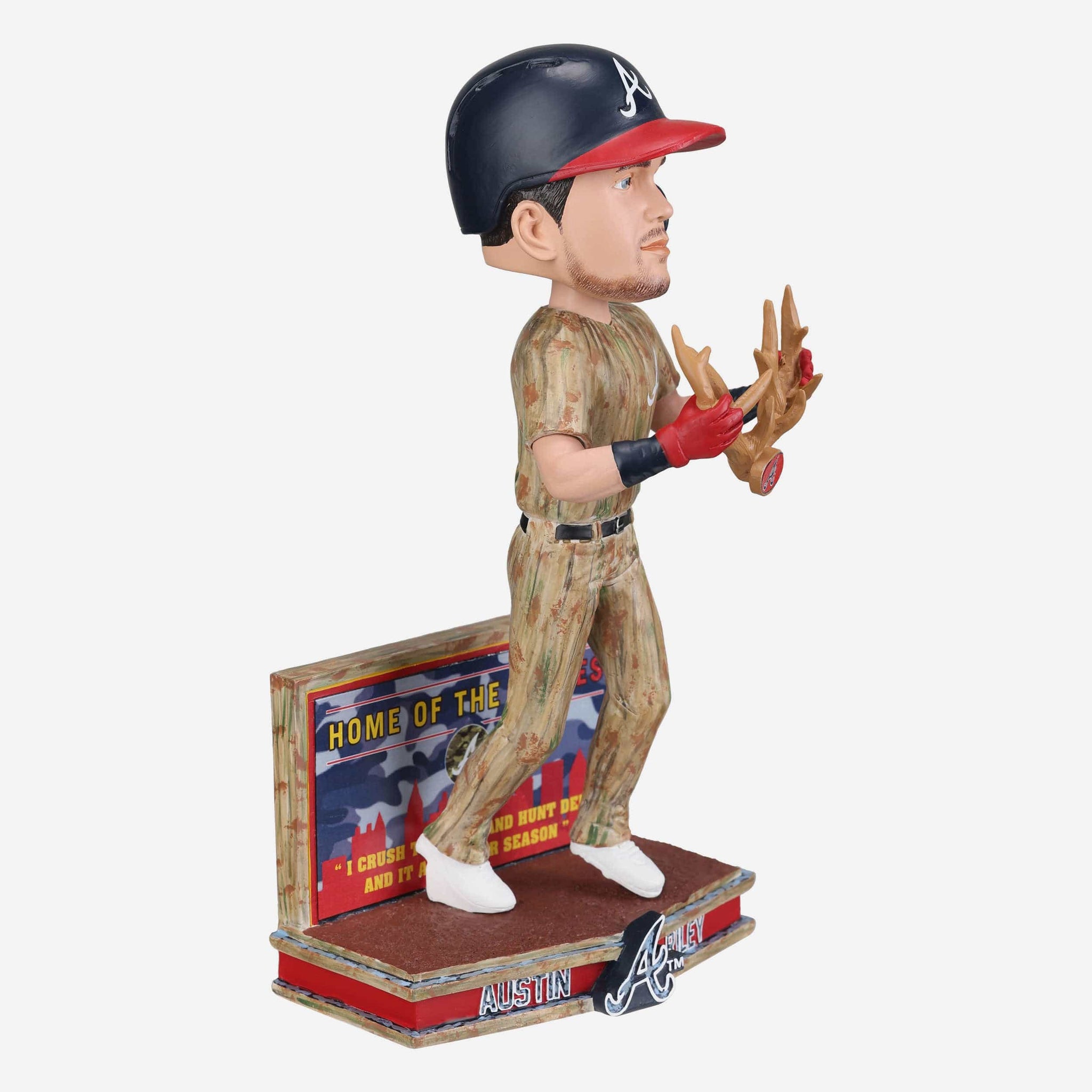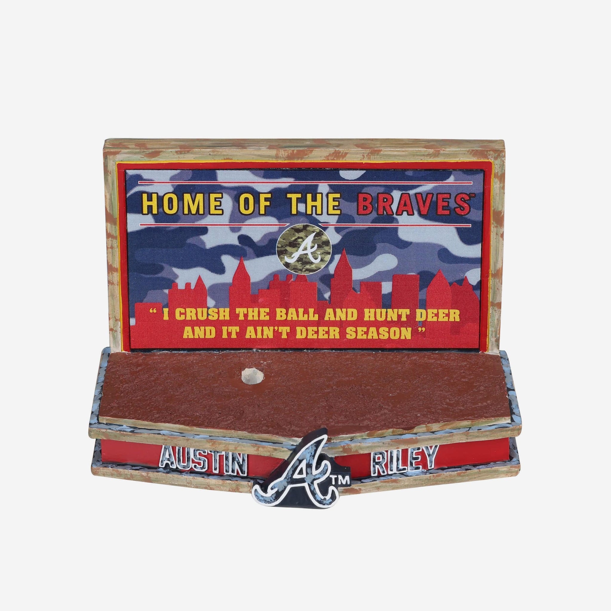 Ready to rally with Riley? We know he might be hard to see, but we assure you he's there - Just in disguise. Despite the camo, your Braves pride will never be hard to find with the Austin Riley Atlanta Braves Camouflage Uniform Bobblehead, from the Braves' Bobblehead of the Month program, on display.