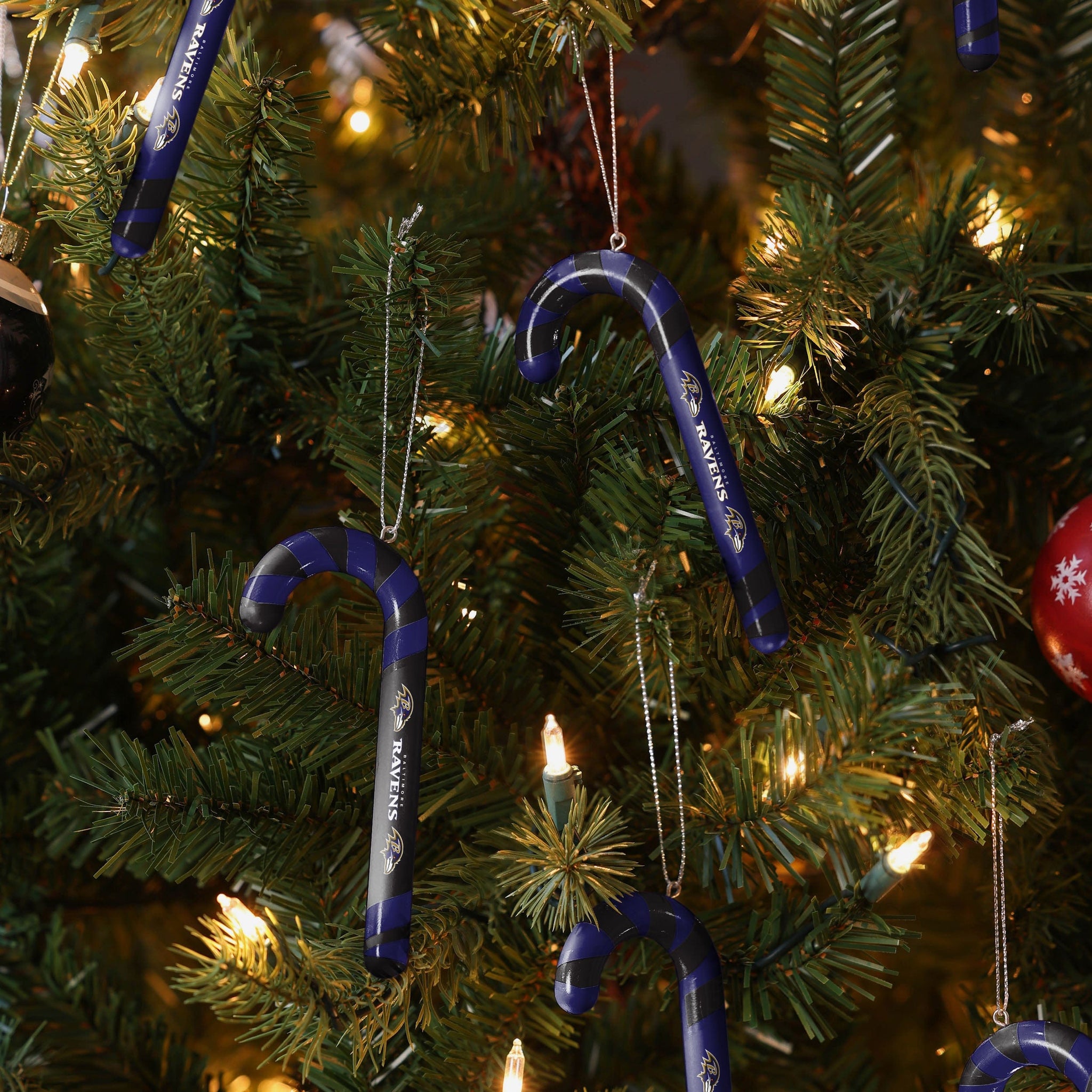 Baltimore Ravens 12 Pack Candy Cane Ornament Set FOCO - FOCO.com