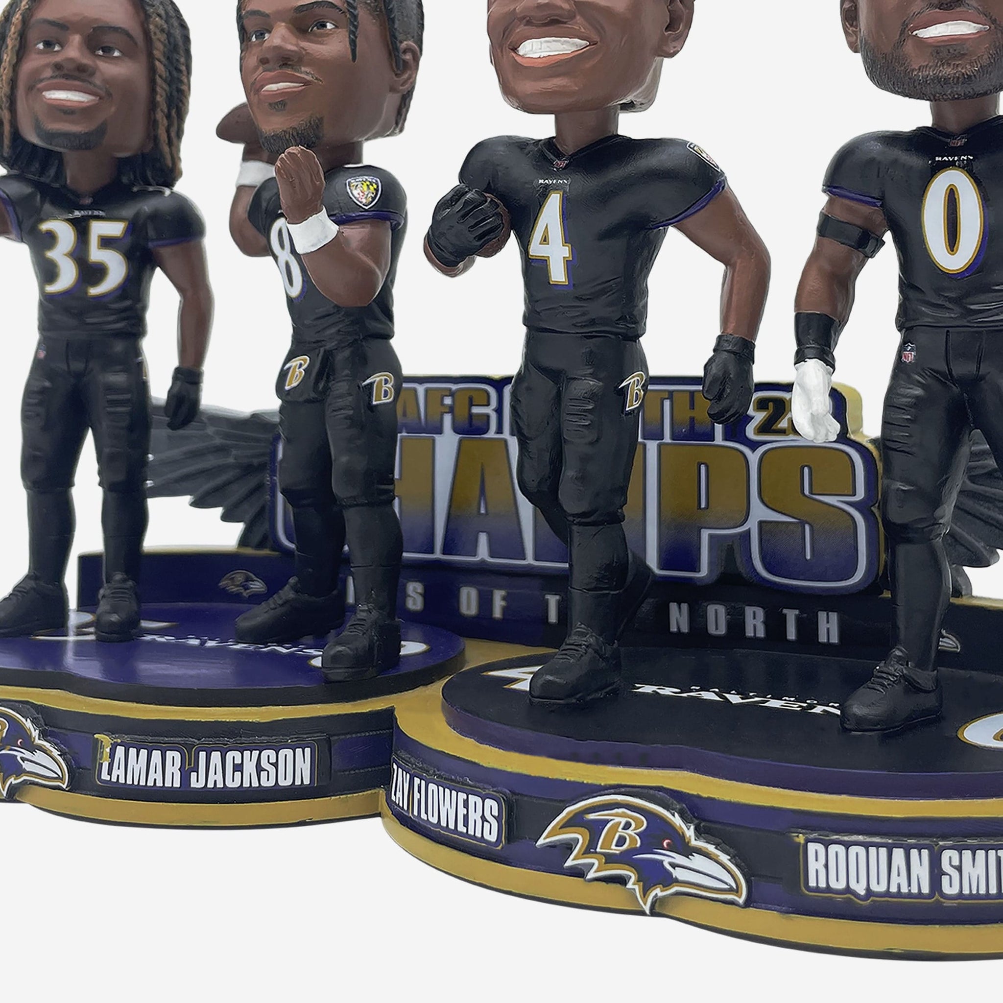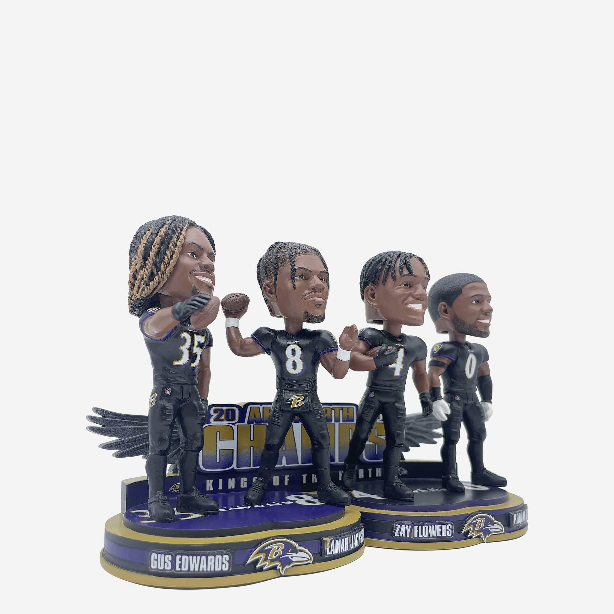 The division champs reside in Charm City! Fly high with the Kings of the North on the wings of this Baltimore Ravens 2023 AFC North Division Champions Mini Bobblehead Scene!