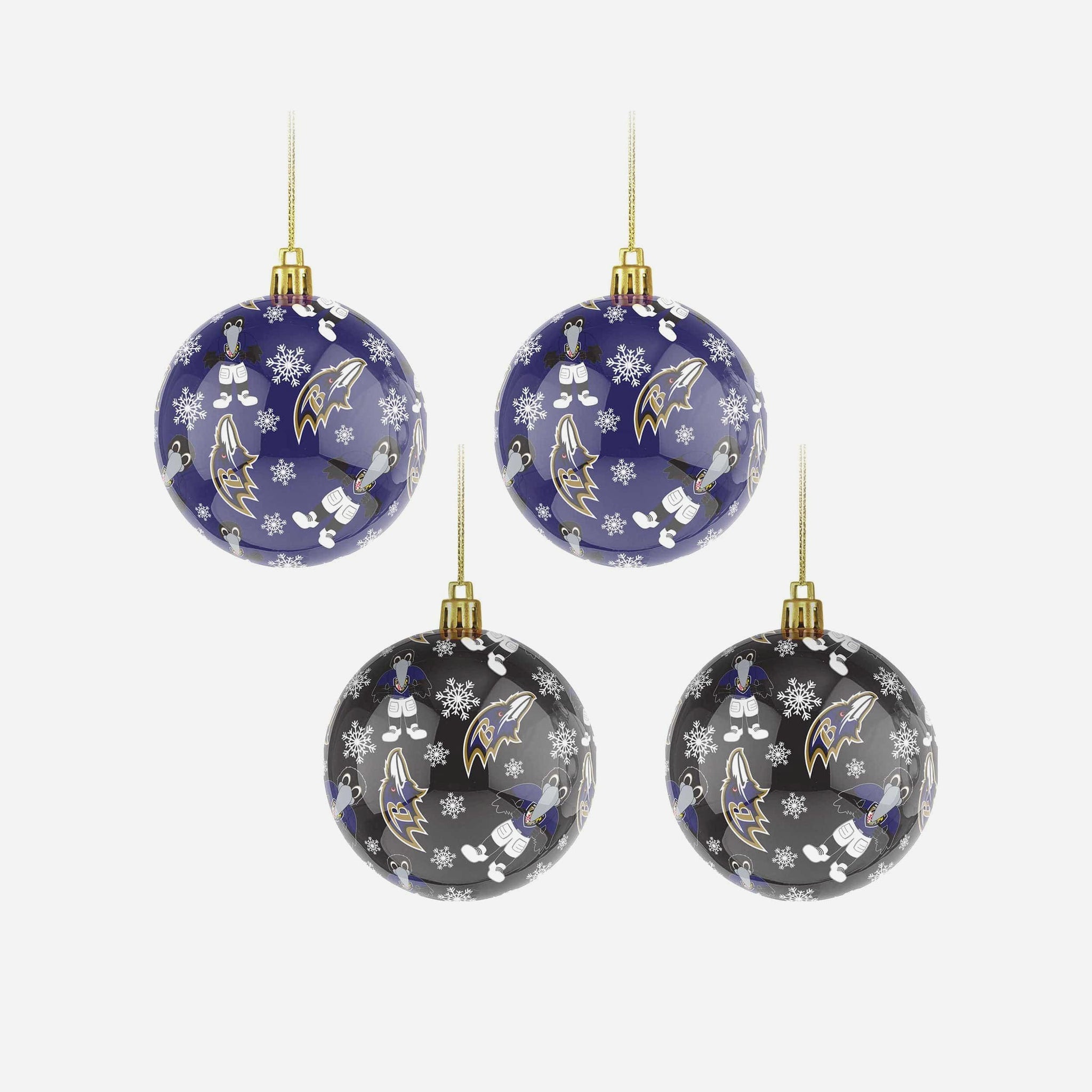 Baltimore Ravens 4 Pack Ball Mascot Ornament Set