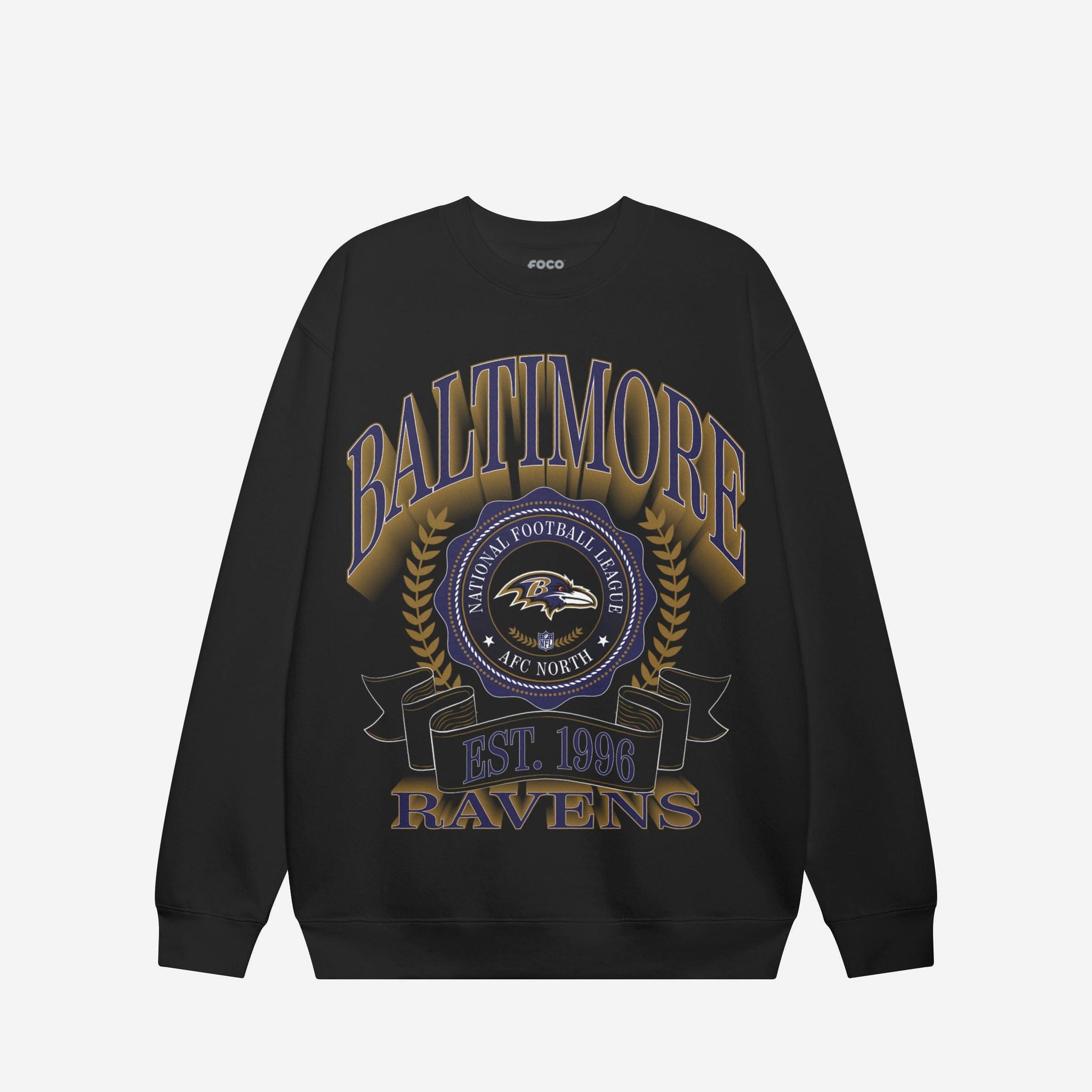 Baltimore Ravens Banner Crest Crew Neck Sweatshirt FOCO S - FOCO.com