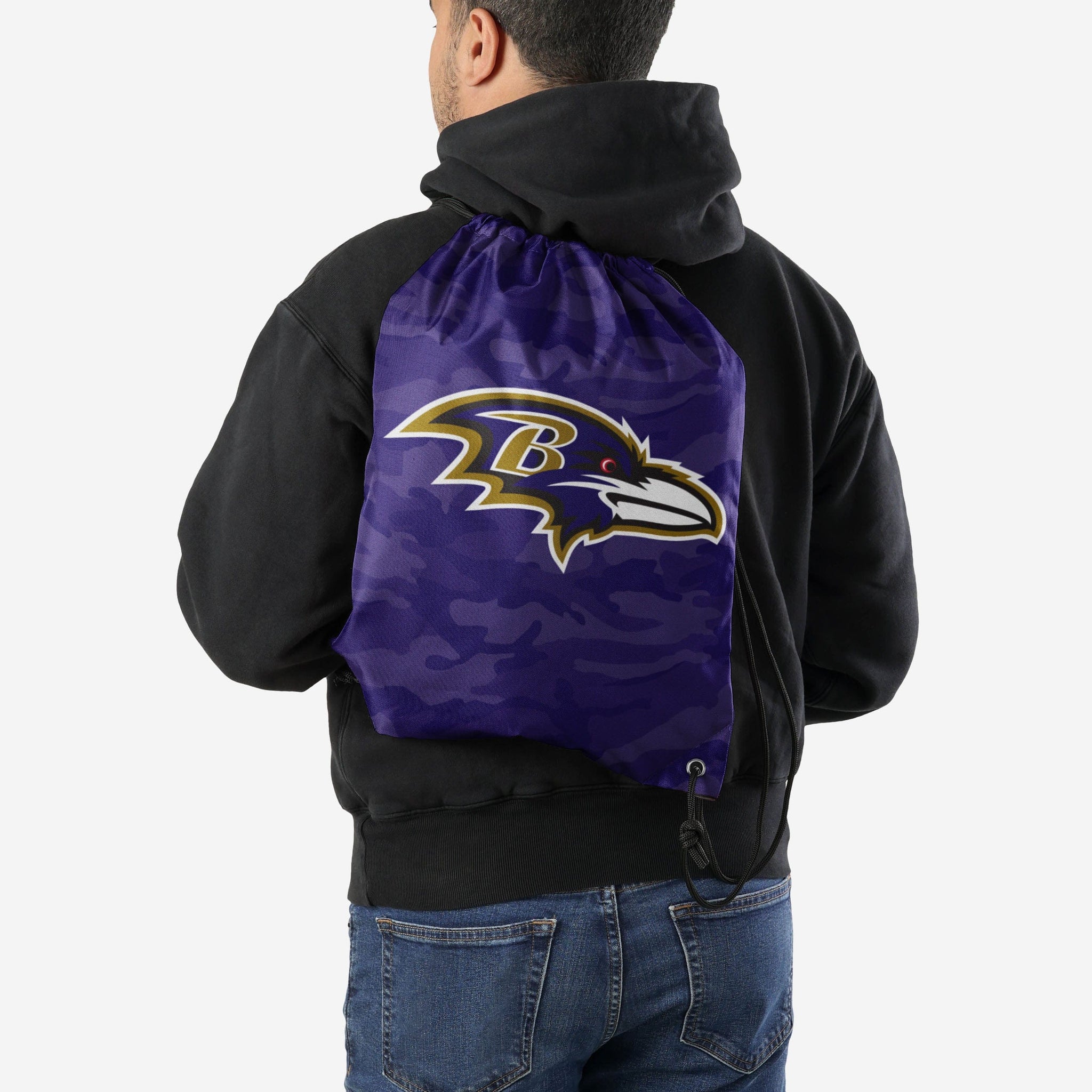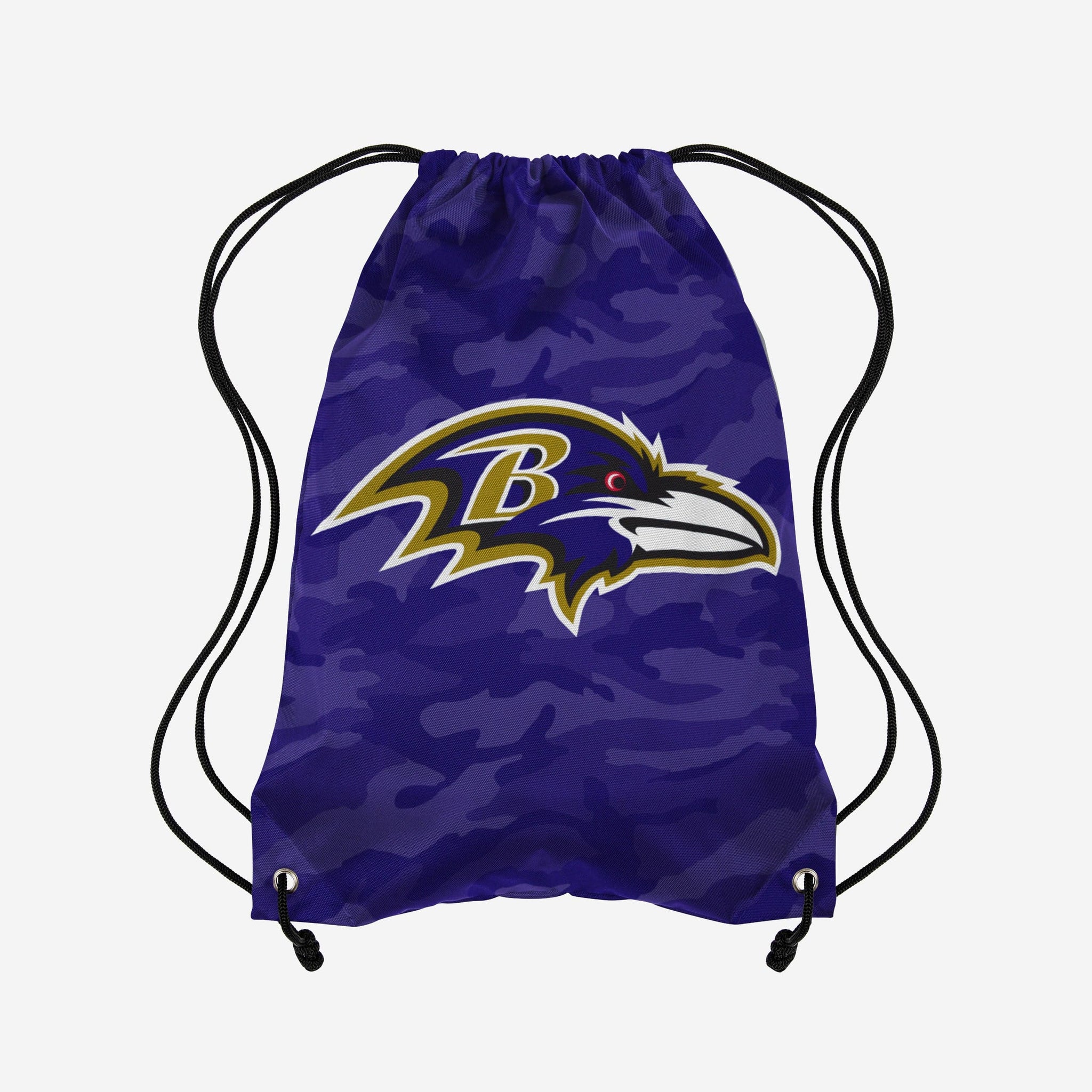 Keep calm. Carry on. Carry your stuff and stand out with this Baltimore Ravens Big Logo Camo Drawstring Backpack!