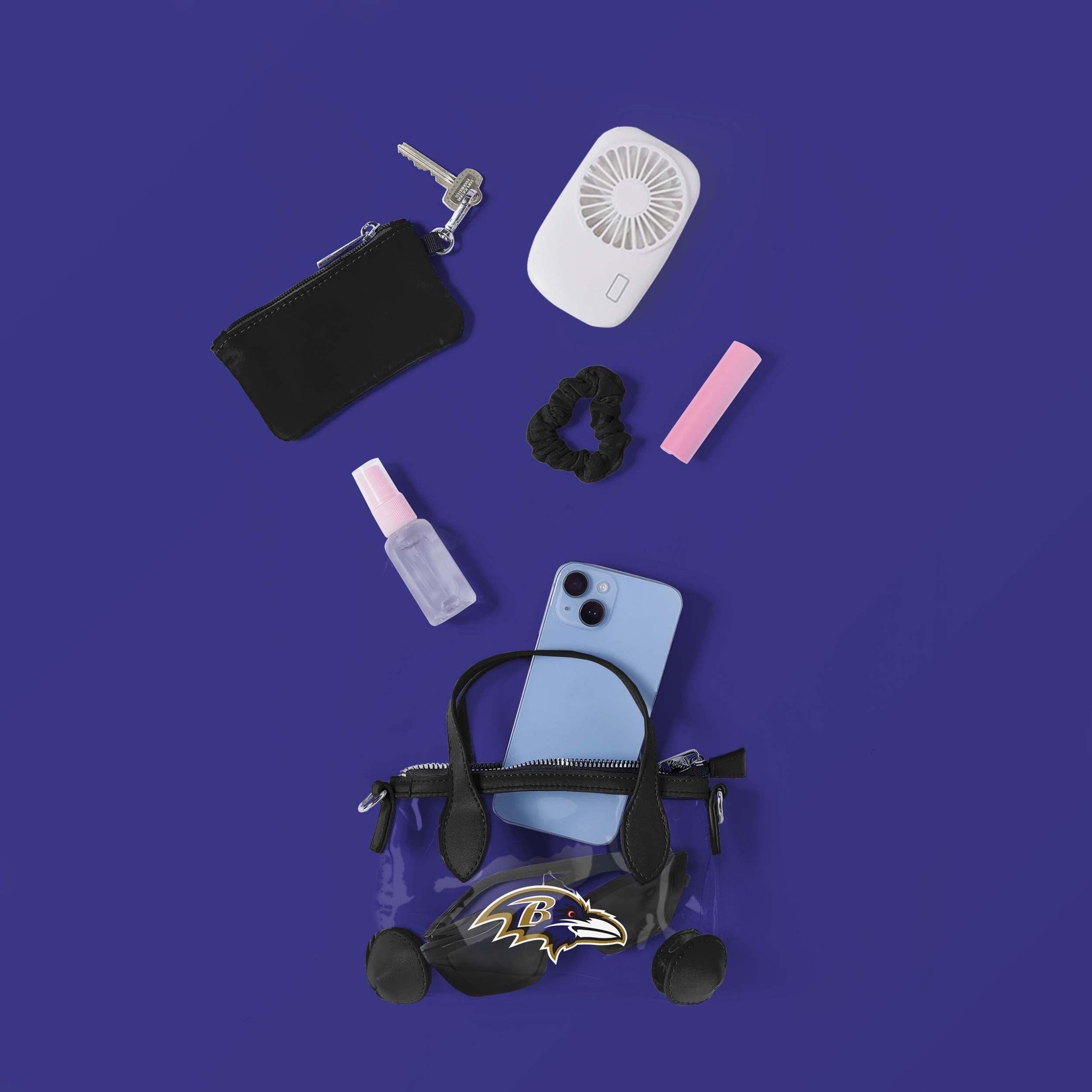 It's clear to see. Whether you've got it slung across your shoulder or held in your hands, this Baltimore Ravens Big Logo Clear Crossbody Mini Purse is the perfect accessory for displaying your fandom and keeping your stuff secure at the game.
