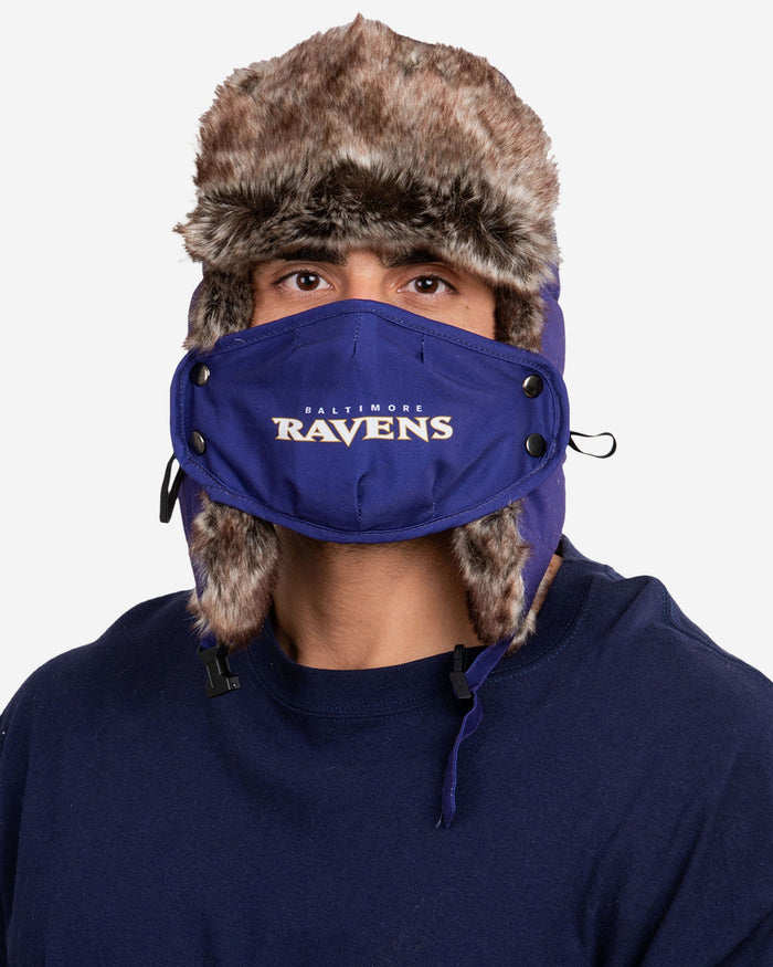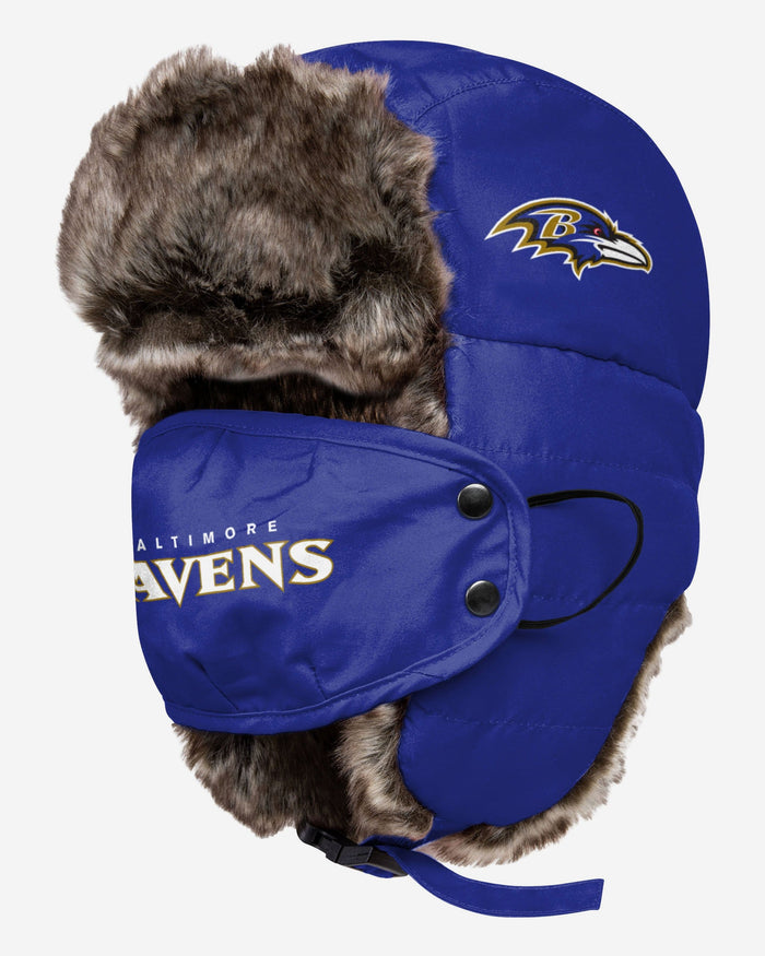 Getting chilly out? Don't worry. We've got you covered! Look cool and stay nice and warm in this Baltimore Ravens Big Logo Trapper Hat with Face Cover!