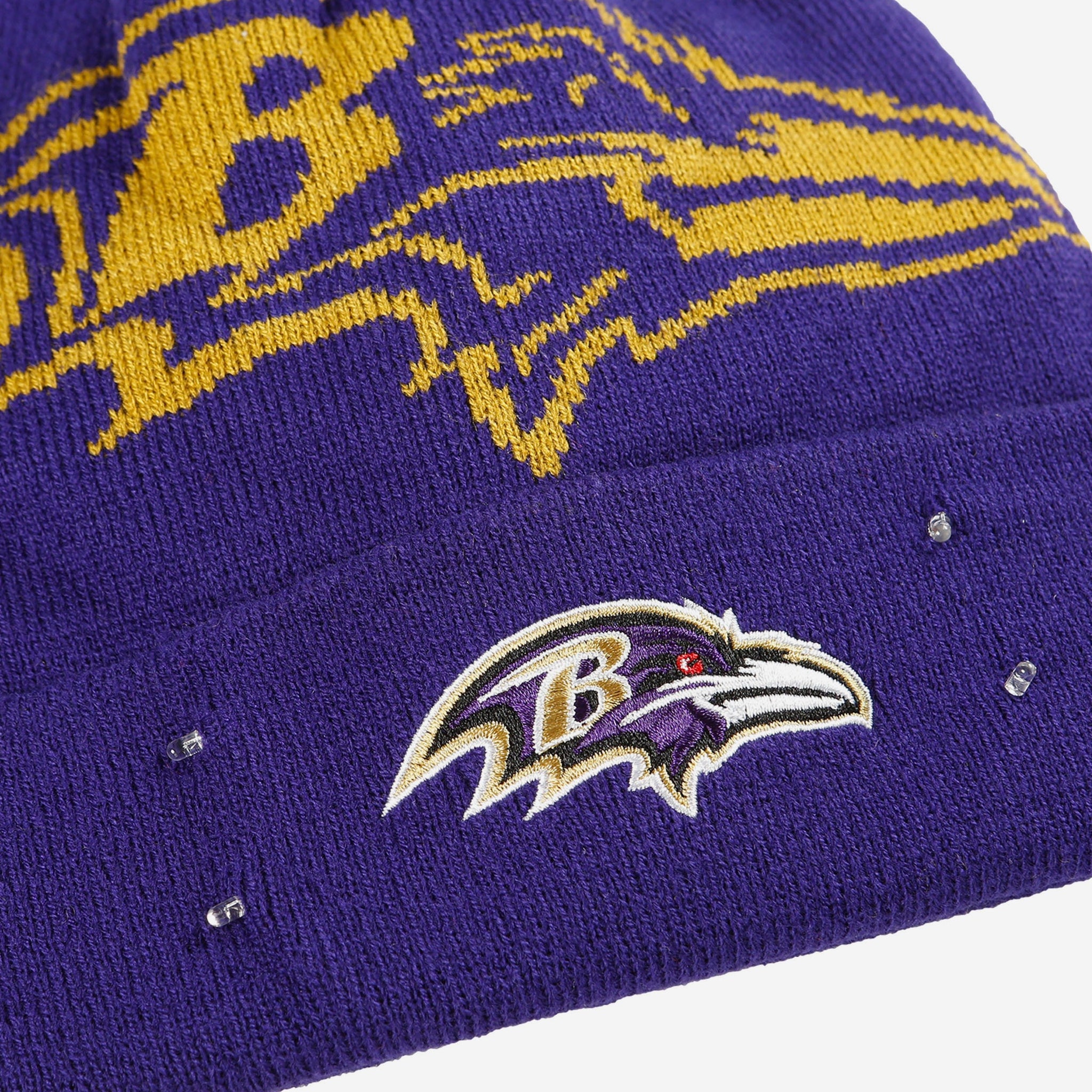 Whether you're braving the elements at the tailgate, cheering on your team in the stadium, or just out and about in the fall and winter, this Baltimore Ravens Cropped Logo Knit Beanie has got you covered! Well, your head, at least.