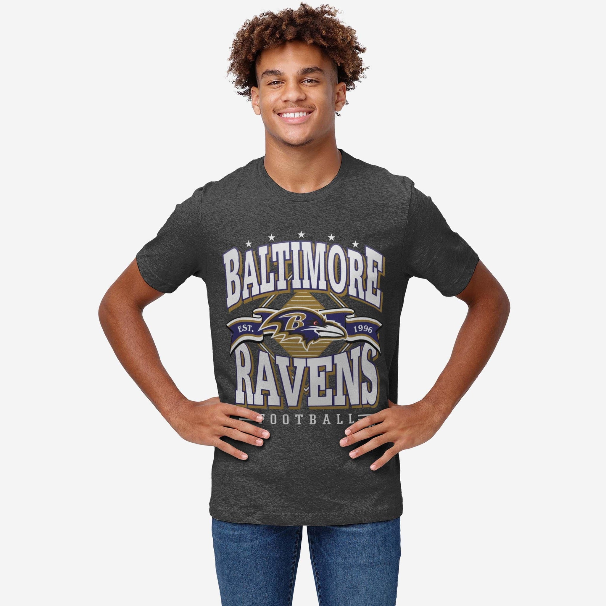 Tired of having to answer questions like, “Who’s your favorite team?” Here’s a shirt that will answer them for you. Show off your fandom and celebrate your team’s decades-spanning awesomeness with the Baltimore Ravens Established Banner T-Shirt.