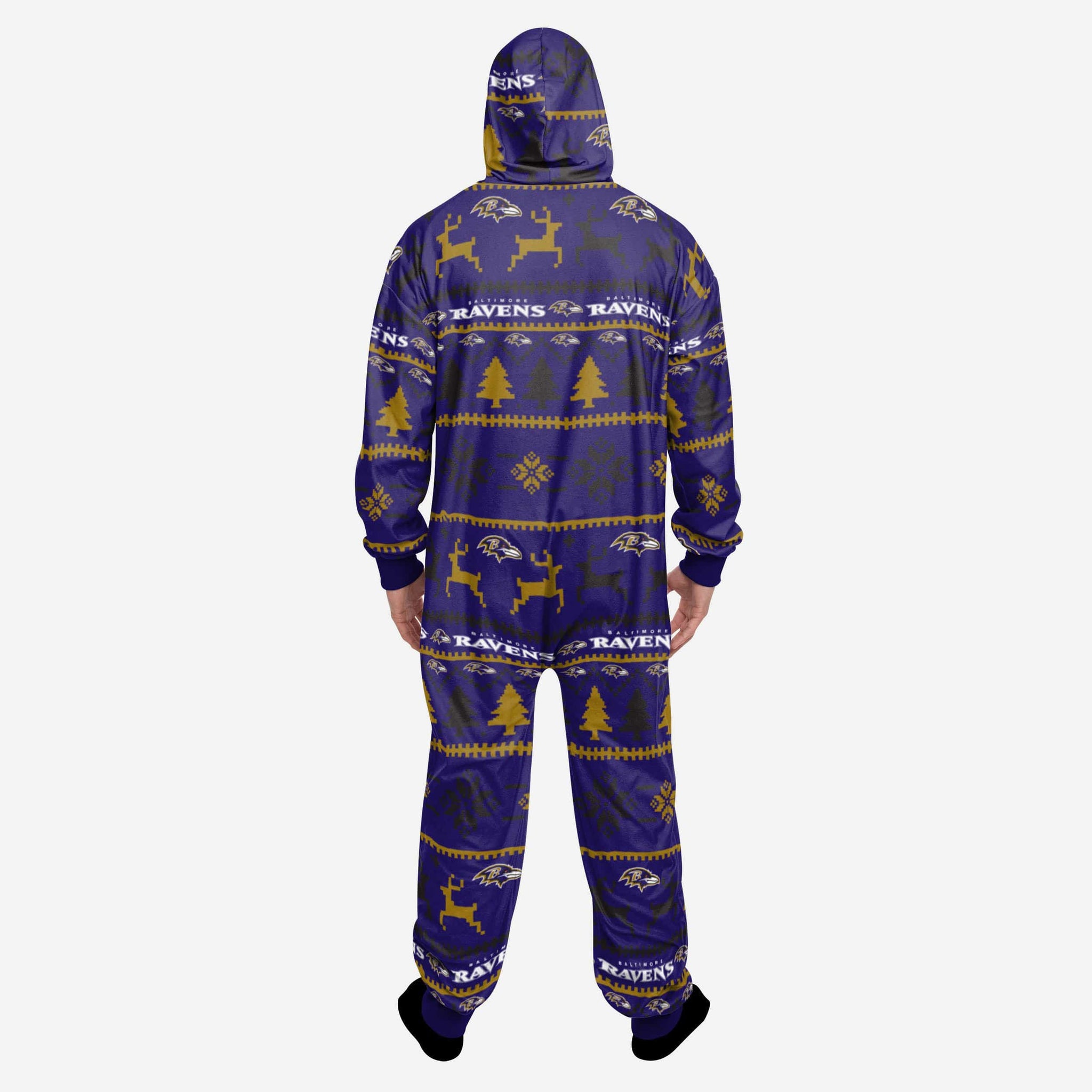 Your new gameday attire has arrived. Whether you're in the stadium, at the tailgate, or just hanging out at home, you're gonna love watching the game in these Baltimore Ravens Holiday One Piece Pajamas.