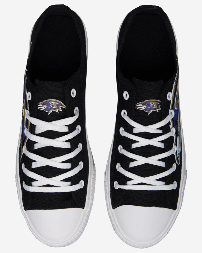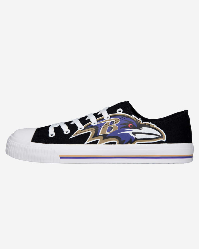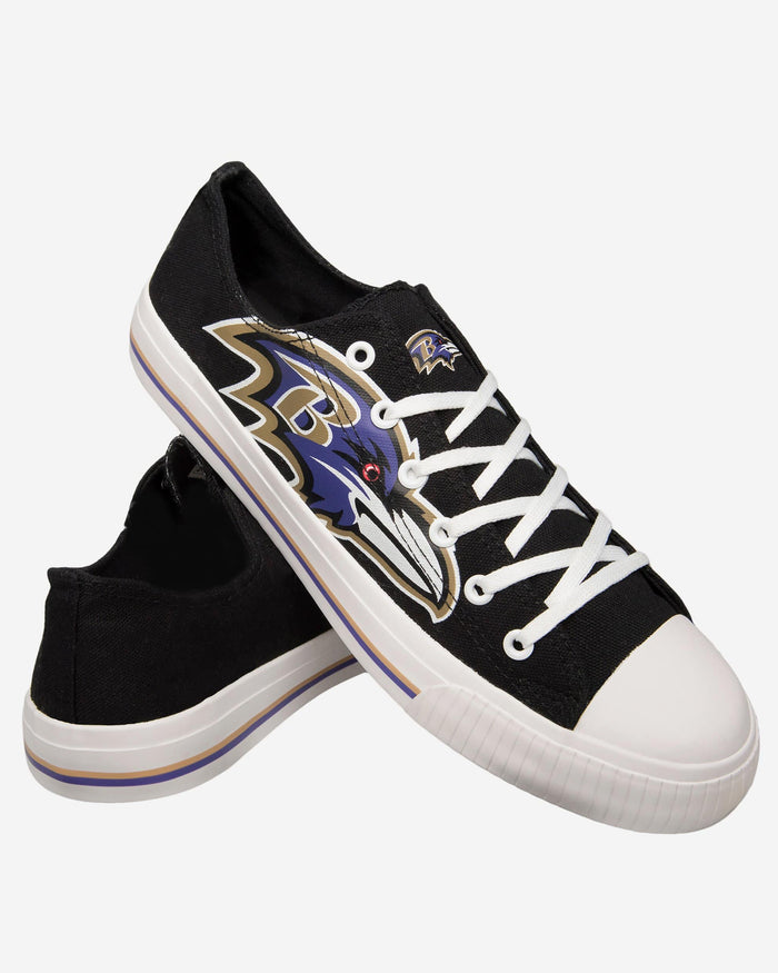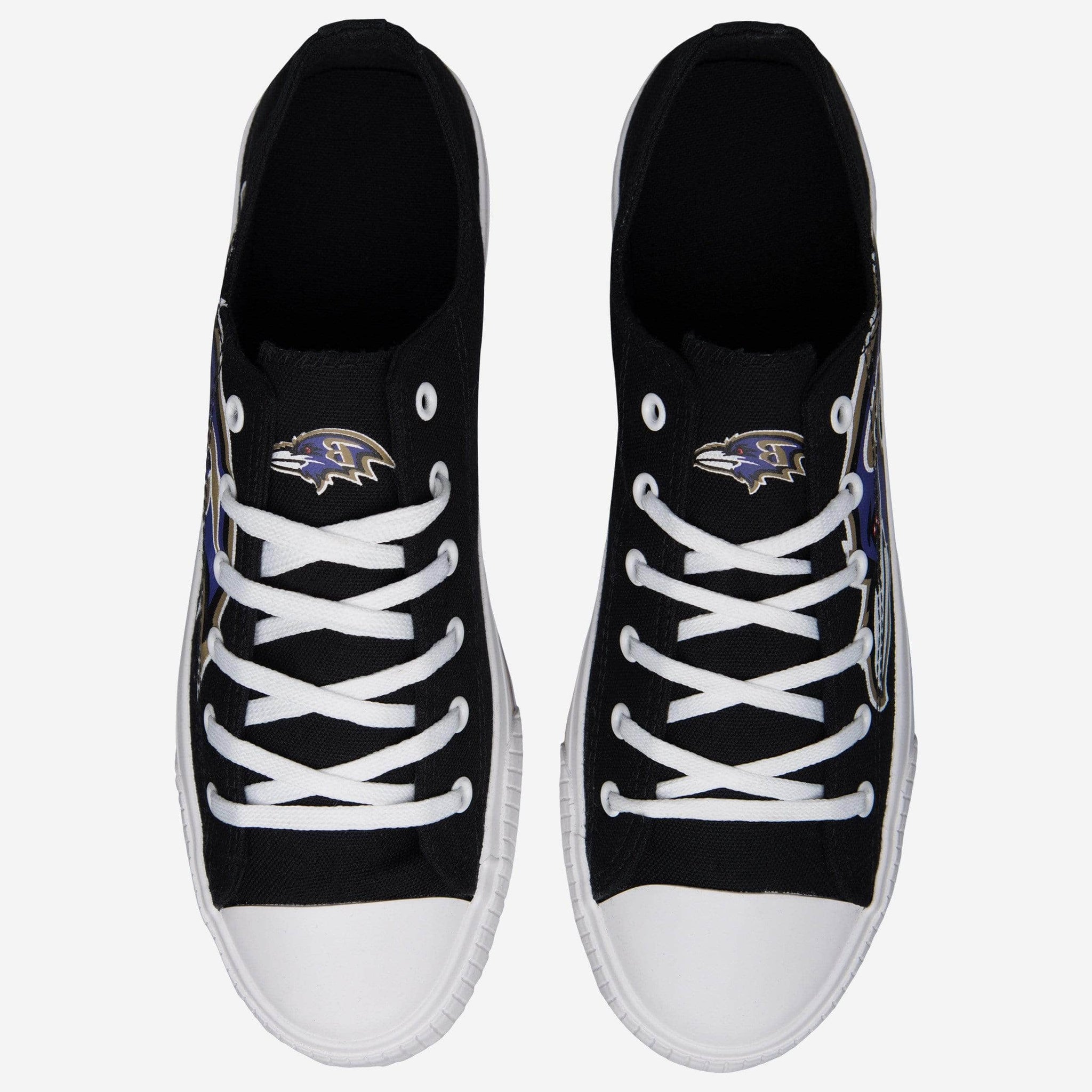 They always say to get your day started on the right foot. But if you're wearing these Baltimore Ravens Mens Low Top Big Logo Canvas Shoes, that could be tough. Because they'll look so good that it'll be tough to tell which one is the WRONG foot.