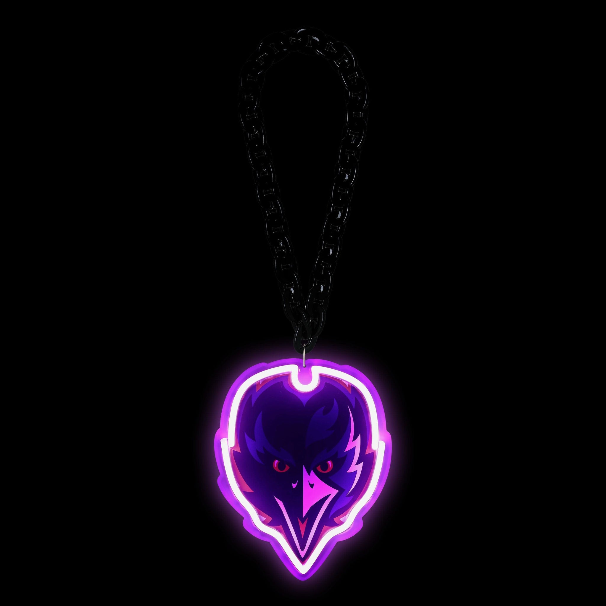 Fandom so bright, you’re going to need shades! Get ready to light things up on gamedays and beyond with the Baltimore Ravens LED Neon Big Logo Chain Necklace.