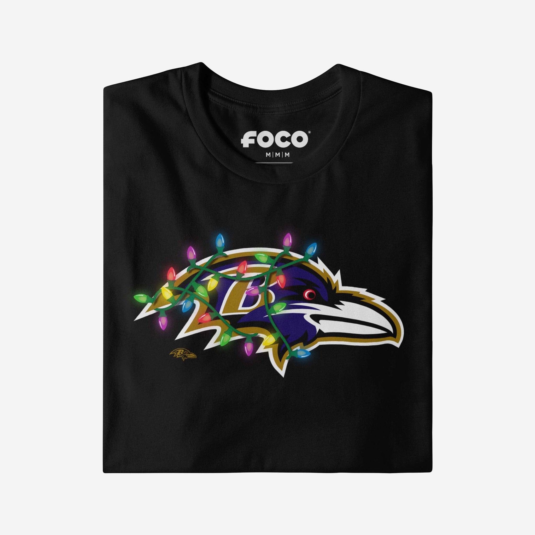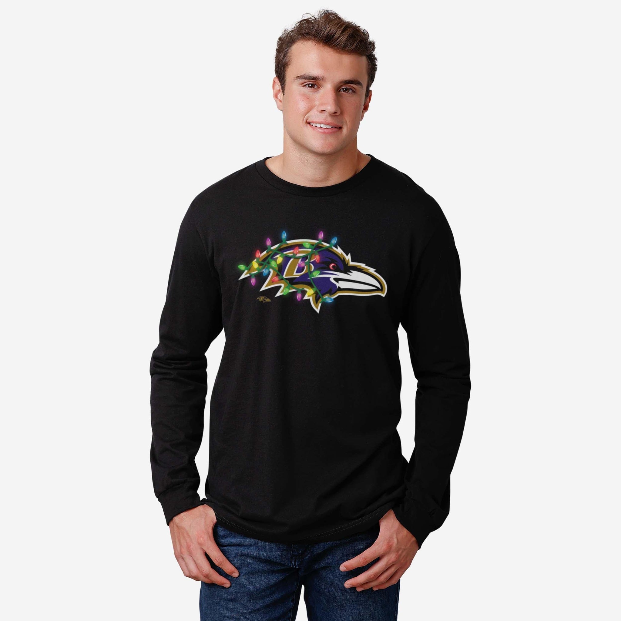 Baltimore Ravens Primary Logo Holiday Lights Long Sleeve T-Shirt FOCO S - FOCO.com