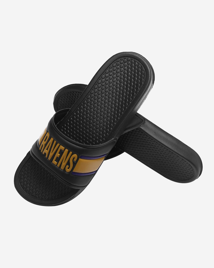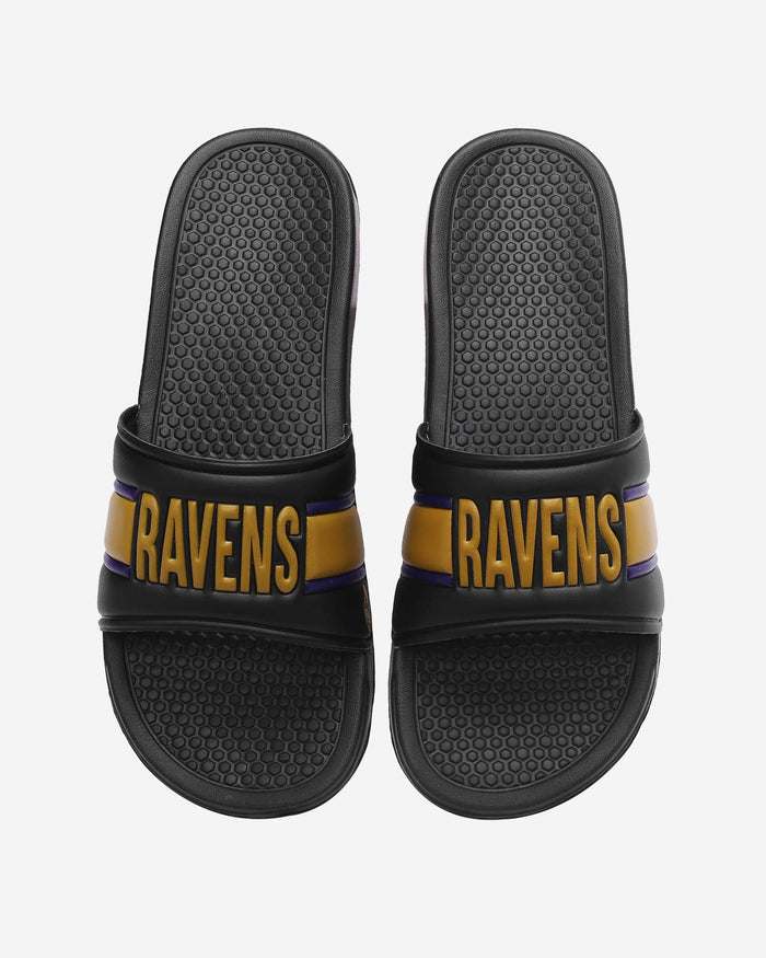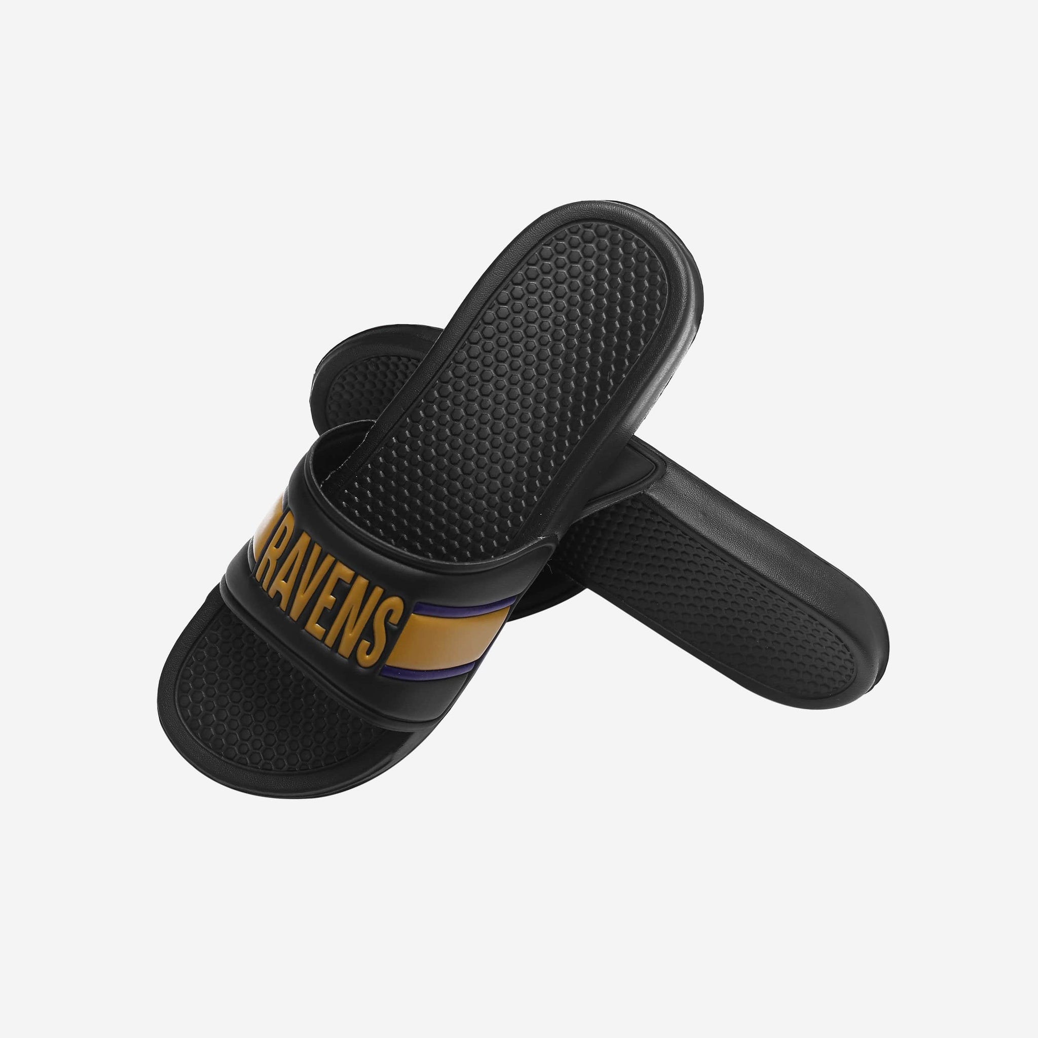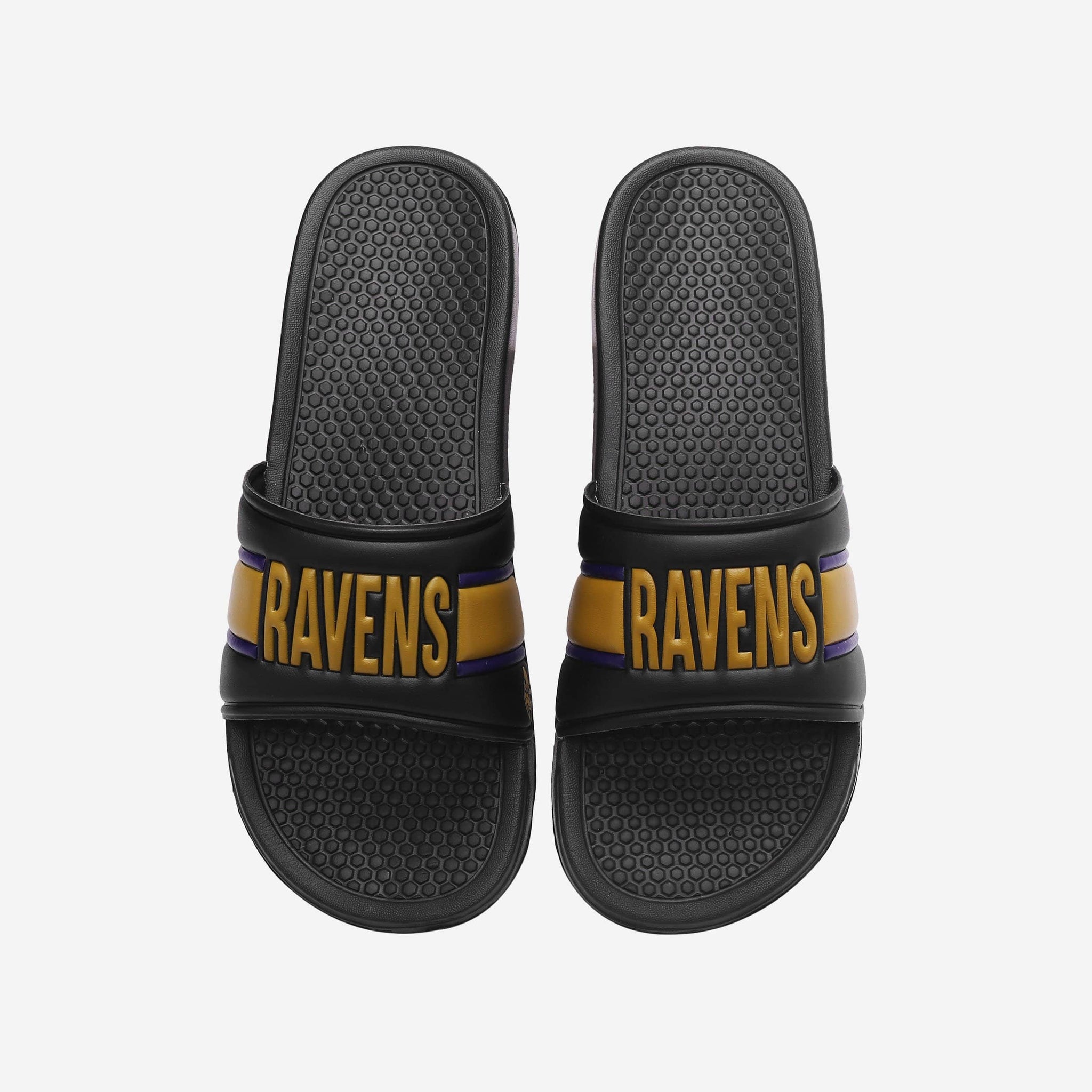 Raise the bar with every step. These Baltimore Ravens Raised Wordmark Slides feature all the style and comfort your phenomenal fan feet so rightly deserve.