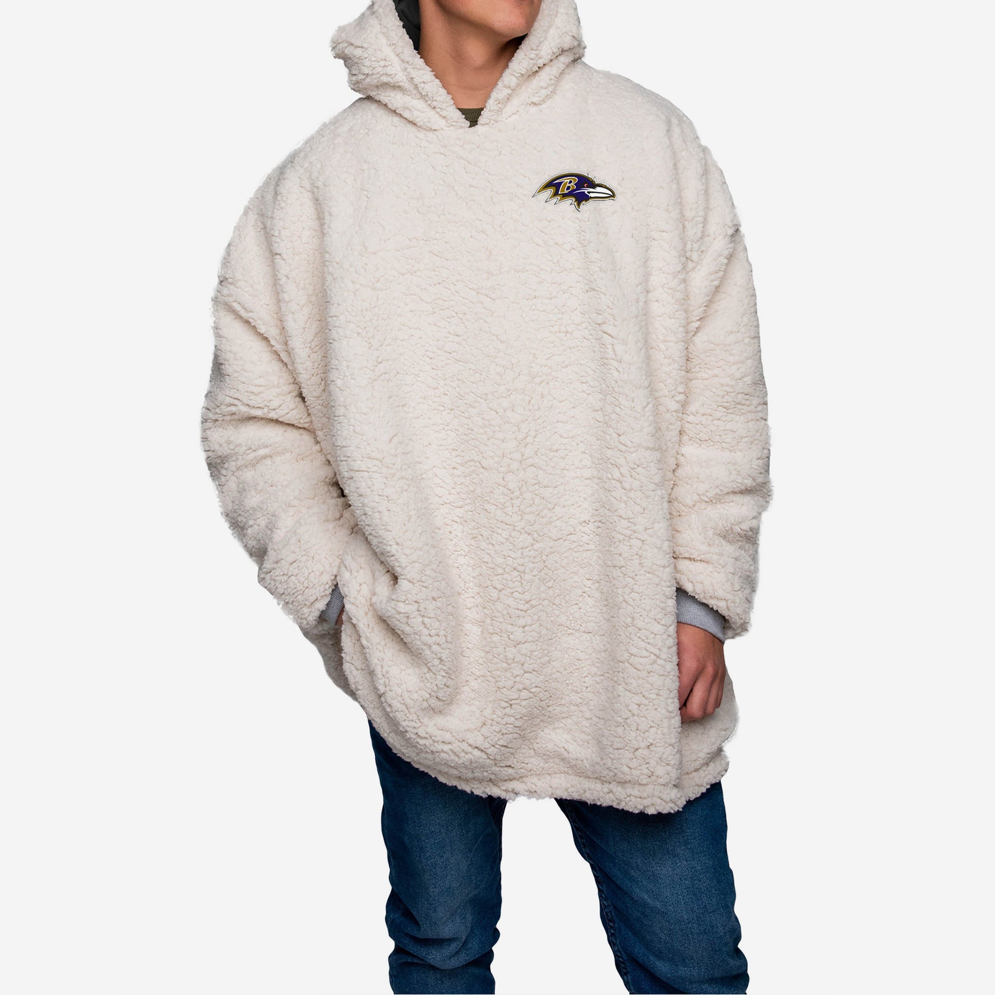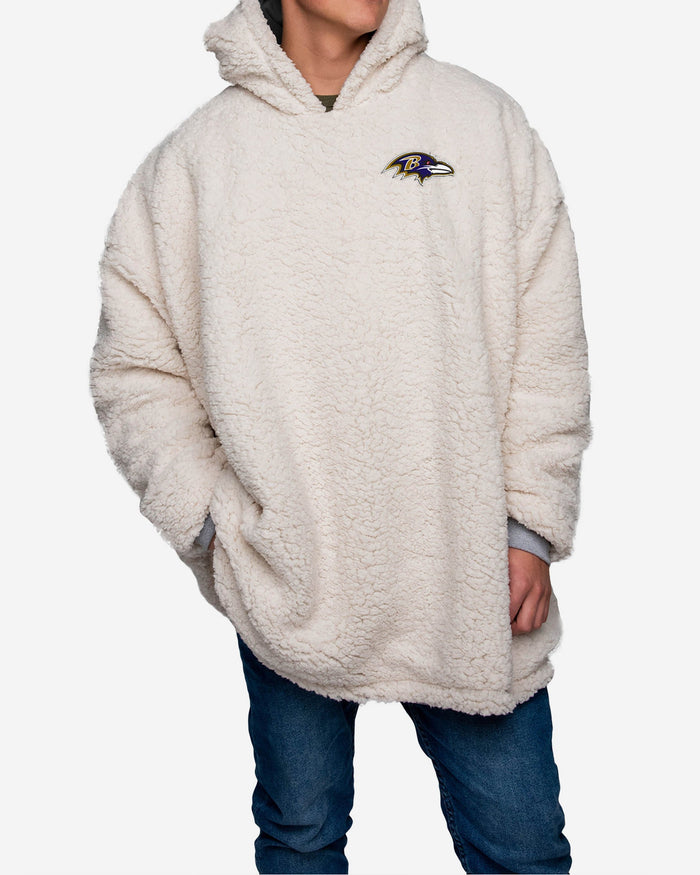 Choosing between showing off your team spirit, looking good, and enjoying some elite relaxation is a tough decision. Borderline impossible. Good news. You don't have to choose. Because you can enjoy that triple threat of fan awesome when you rock this Baltimore Ravens Reversible Big Logo Hoodeez.