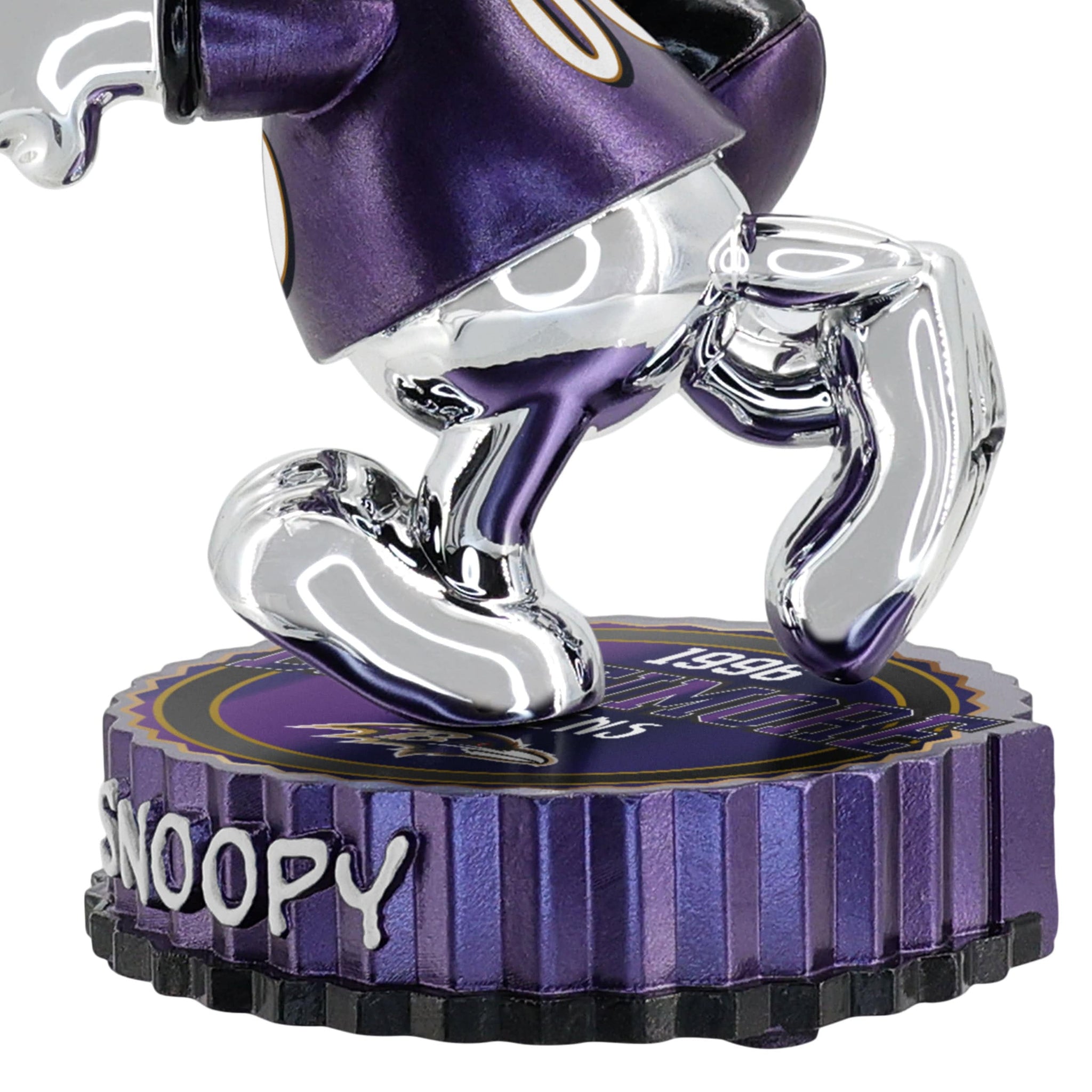 Snoopy is suiting up for game day in dazzling style! Add a little gridiron glow to your collection with this Baltimore Ravens Snoopy Peanuts Electroplated Medium Bighead Bobblehead.