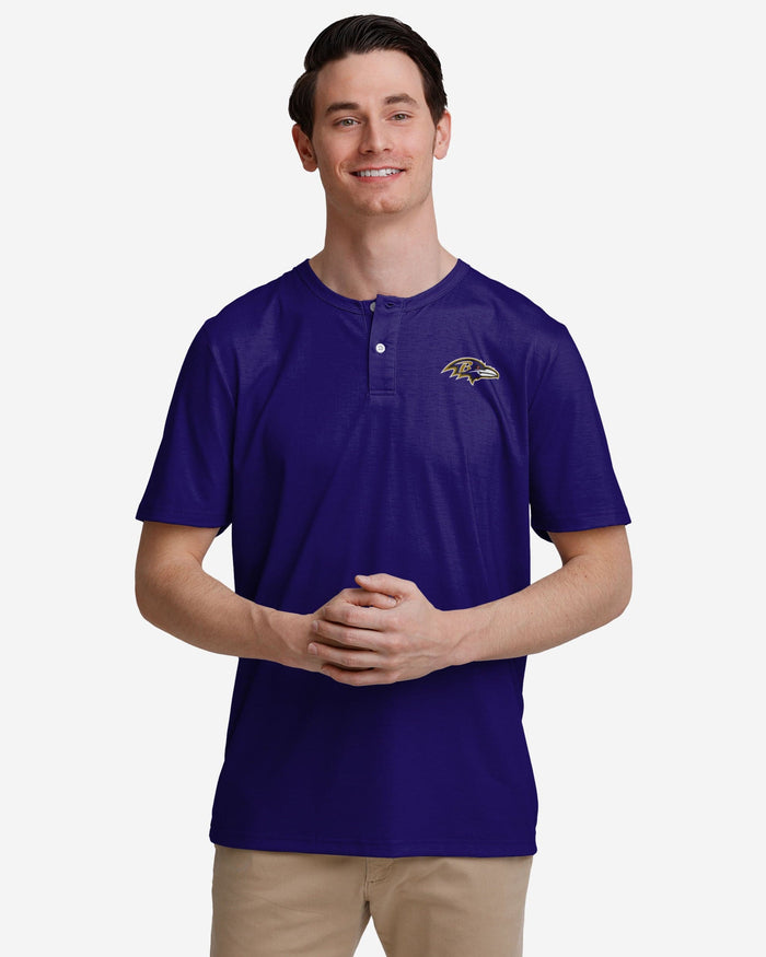 Short-sleeve style for long-time fans. Or new fans. We don’t judge. Regardless, you're gonna look great in this Baltimore Ravens Solid Team Logo Short Sleeve Henley.