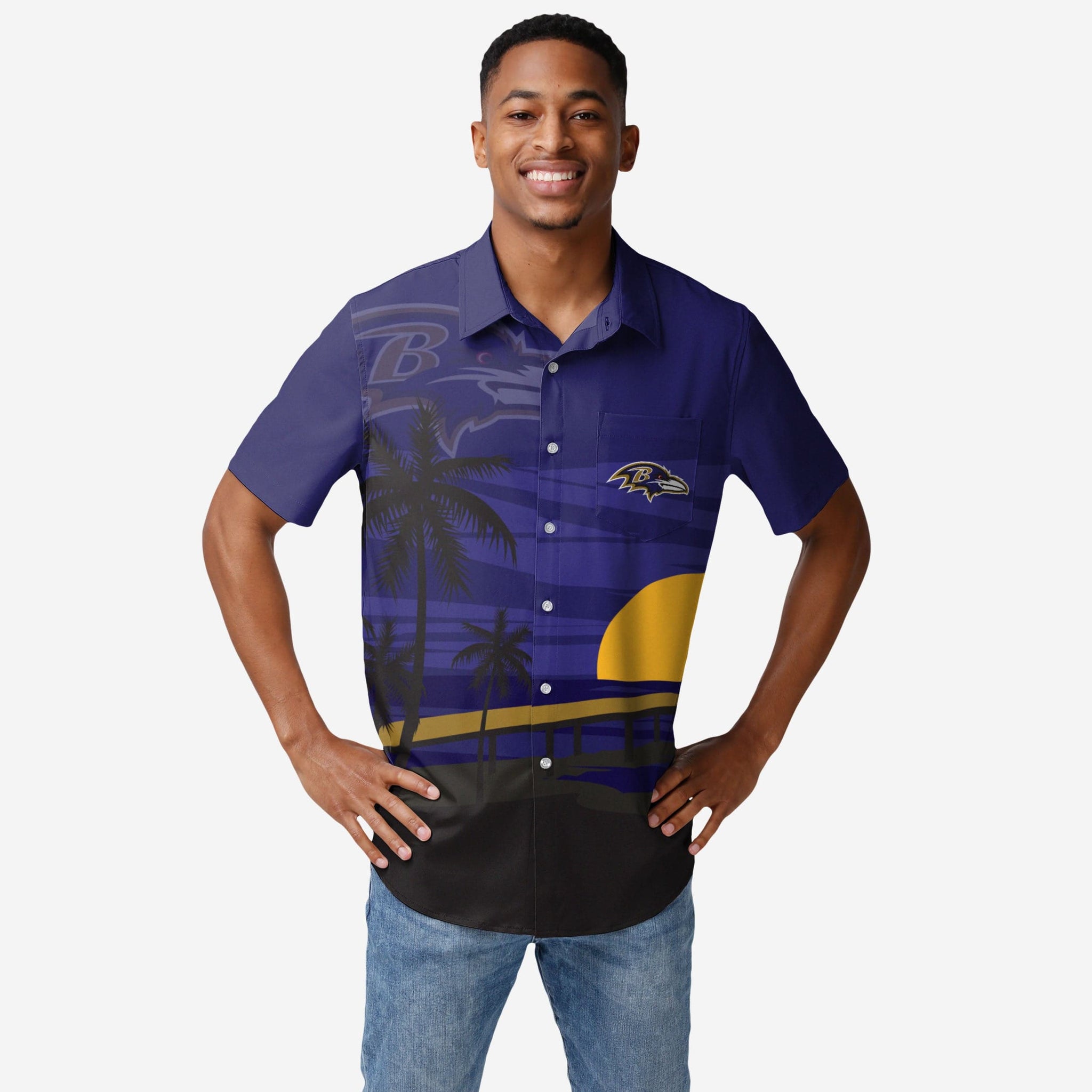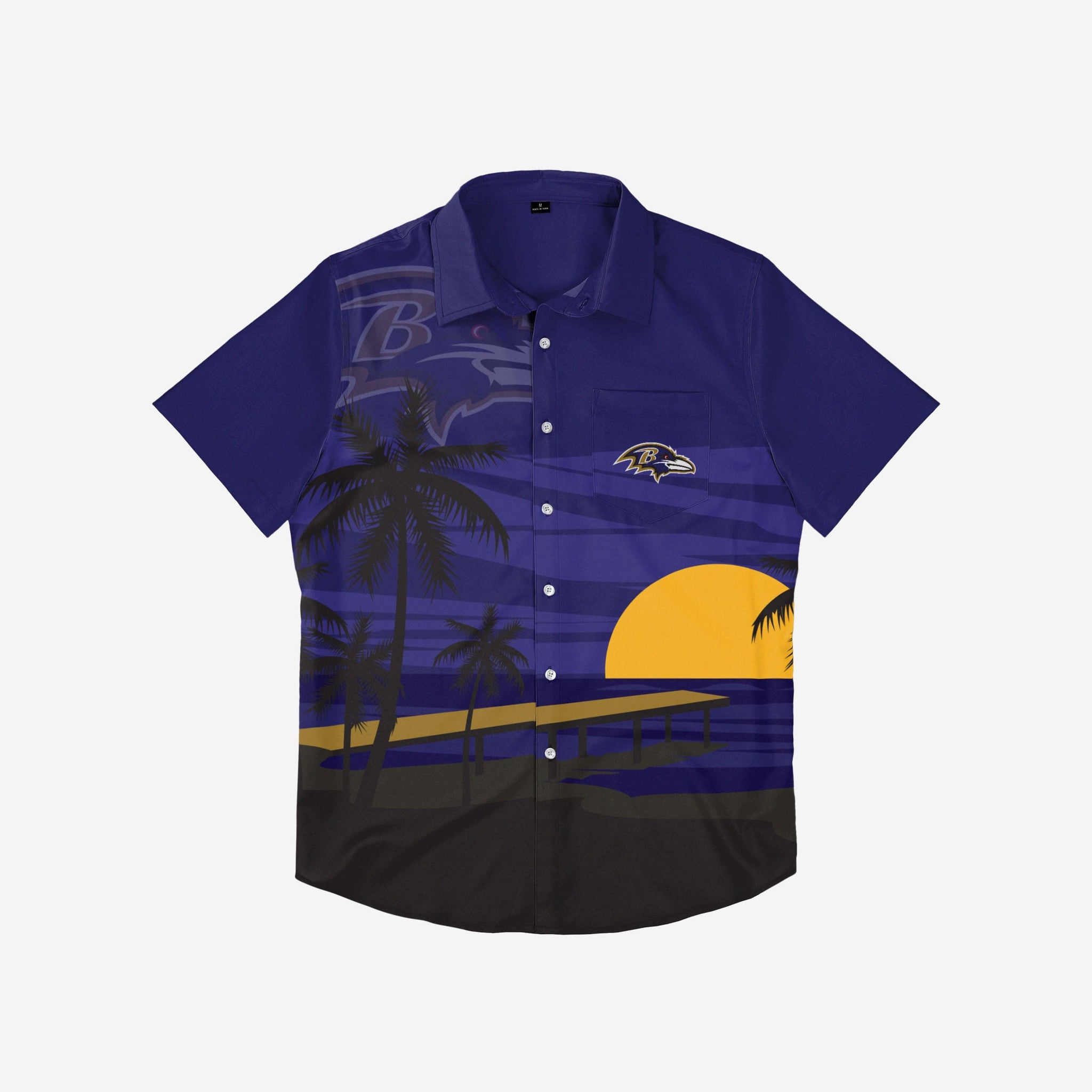 Aloha from paradise! Soak up the rays of a scenic summer sunset when you're rocking this Baltimore Ravens Tropical Sunset Button Up Shirt, where it's always island time.