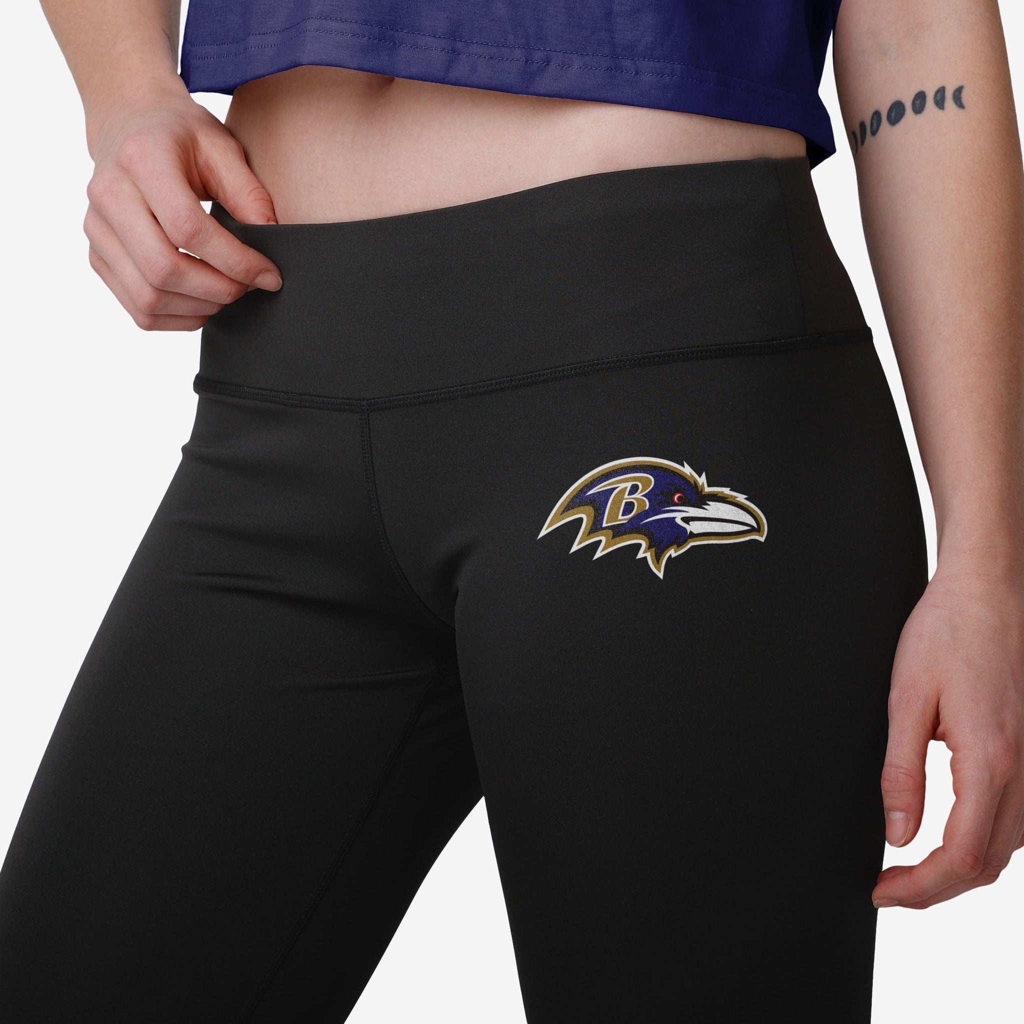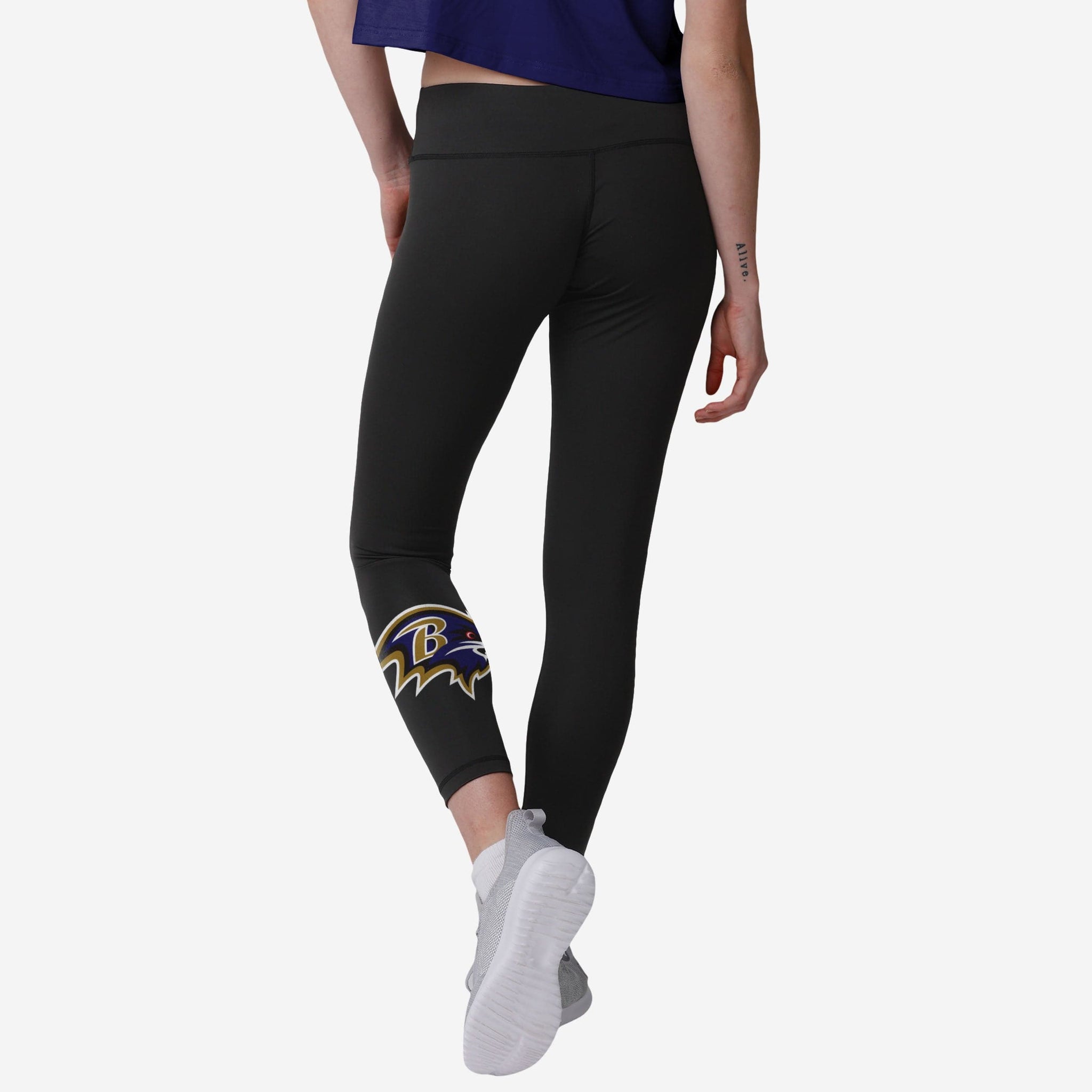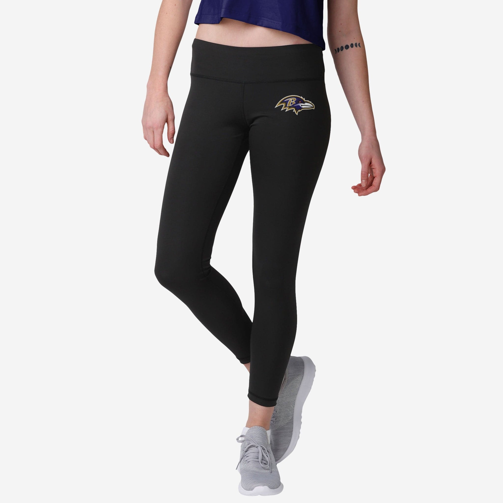 Now, we're no math experts. But we're pretty sure your legendary team spirit + some unmistakable style = These Baltimore Ravens Women's Calf Logo Black Leggings.