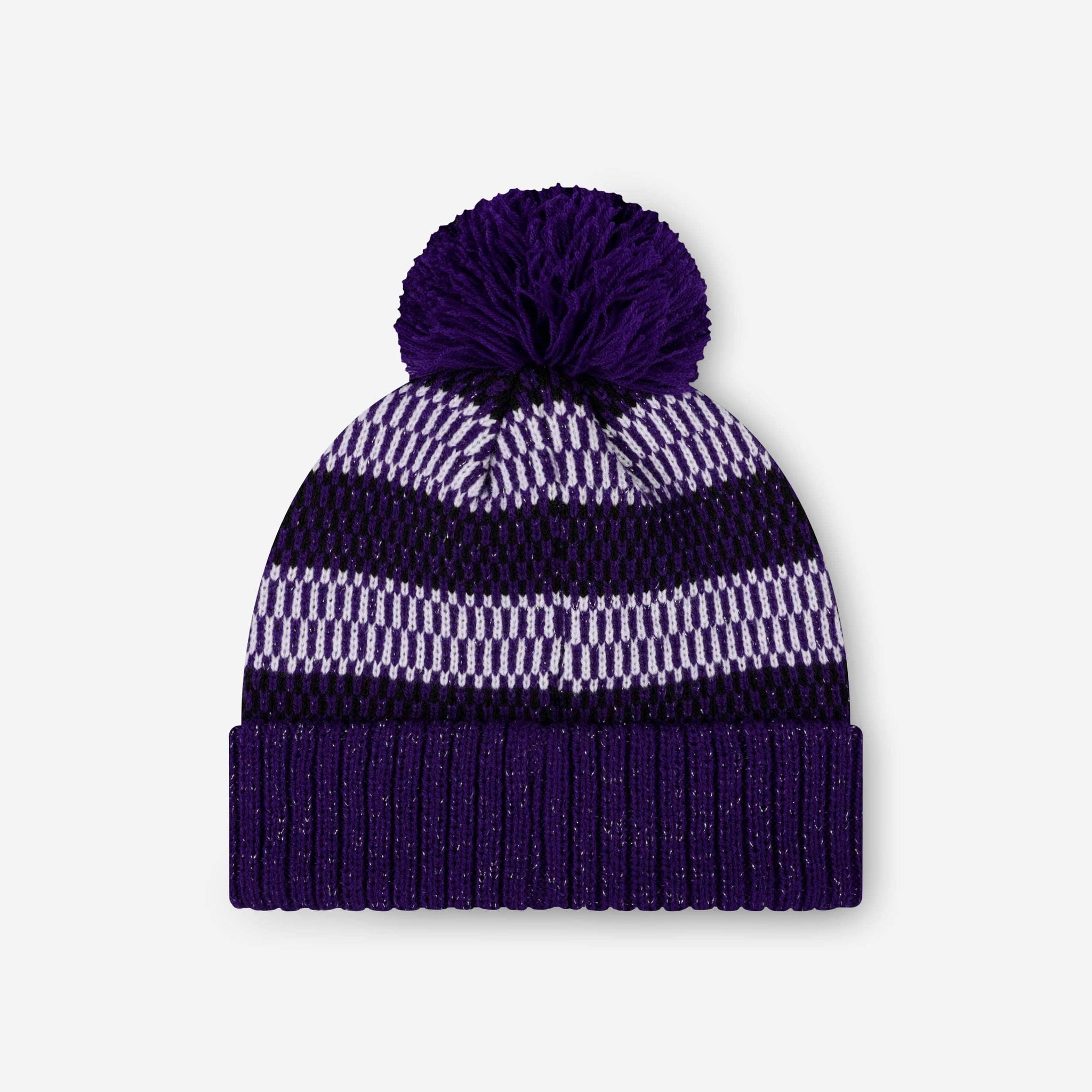 Putting together the ultimate fit for the tailgate and beyond? Make sure to get your head in the game with the Baltimore Ravens Women's Cozy Knit Metallic Thread Pom Beanie!