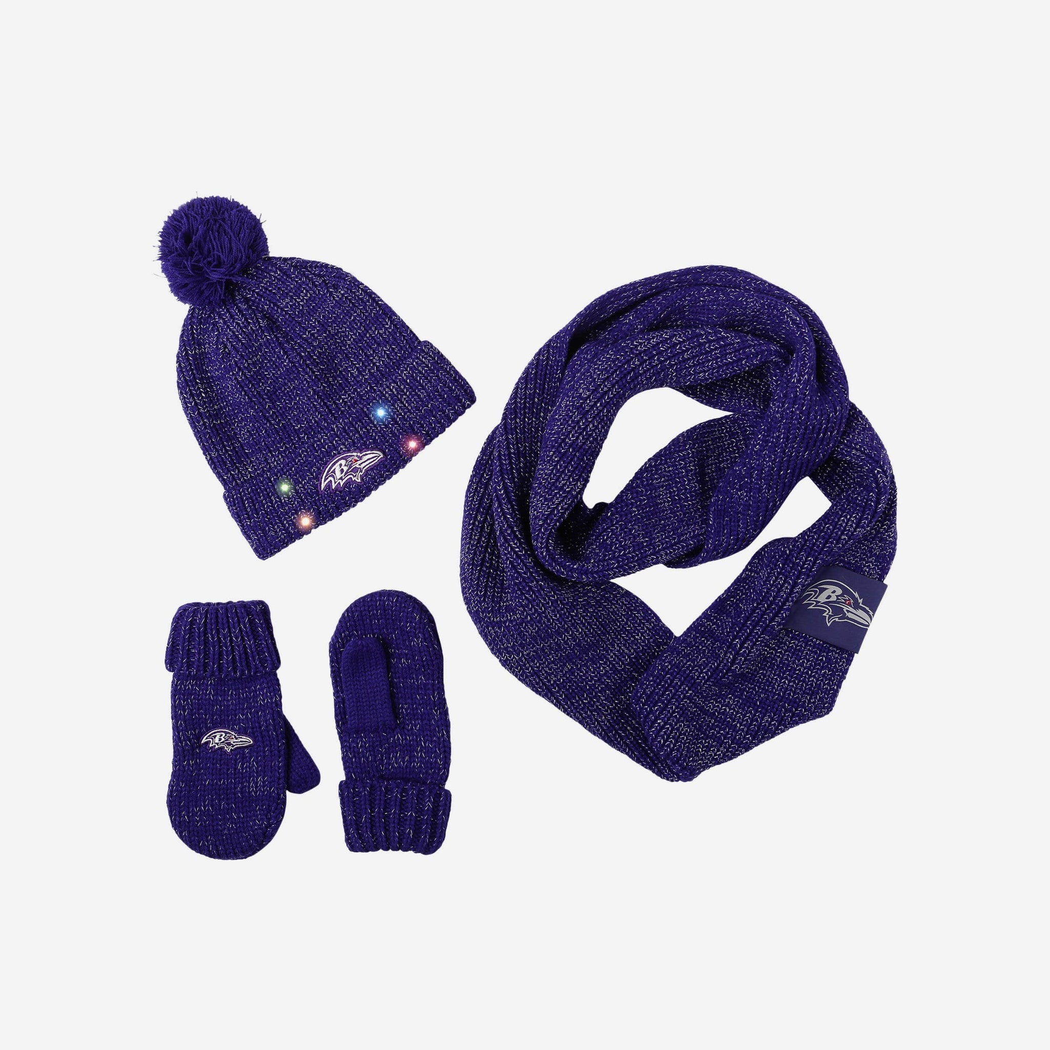 Baltimore Ravens Womens Glitter Knit Cold Weather Set