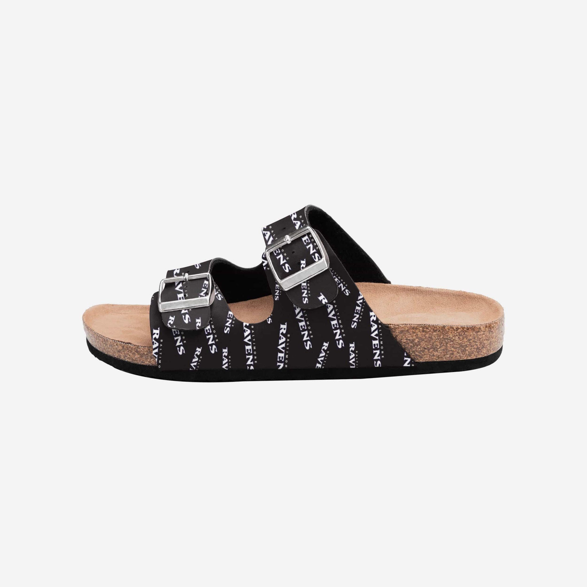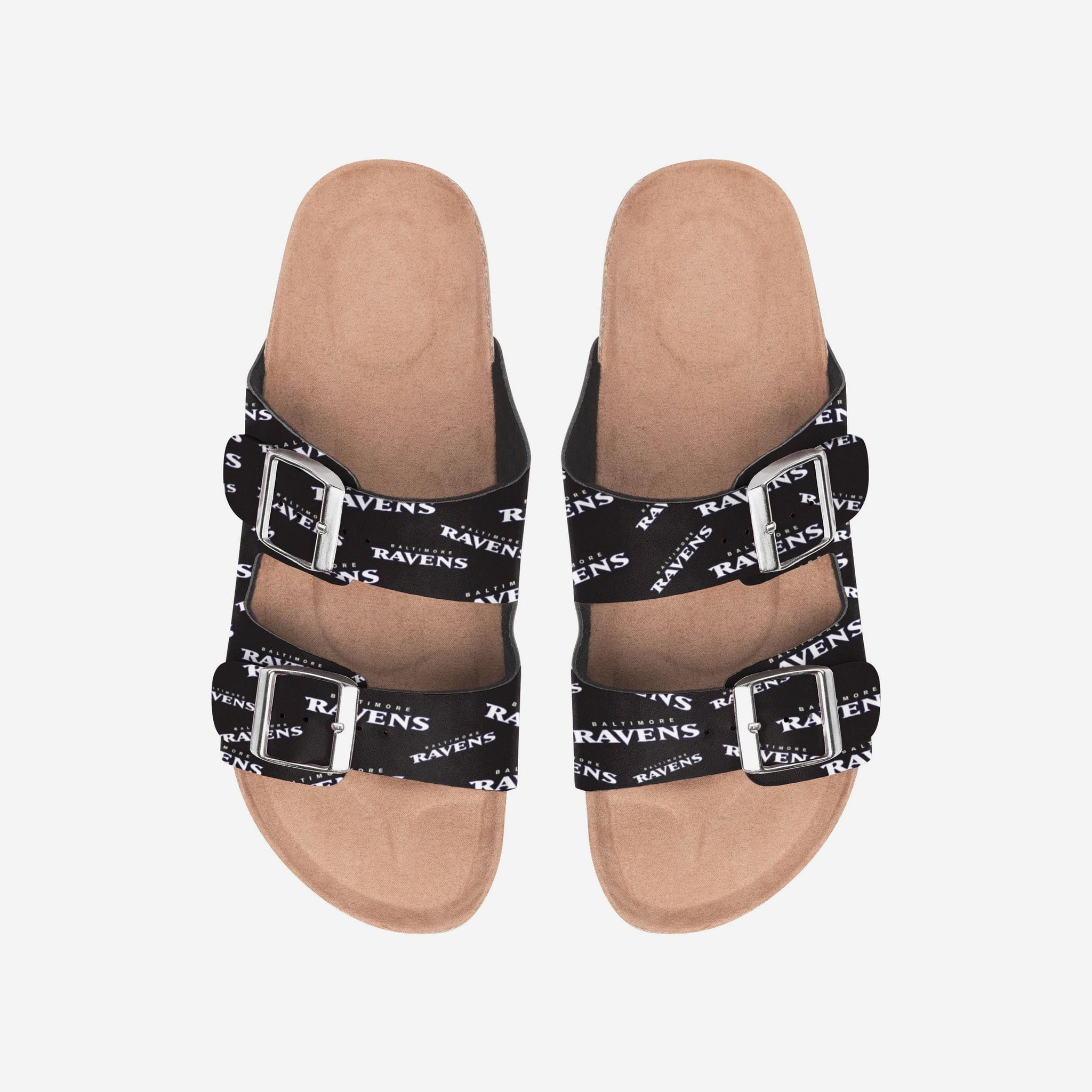 Double your fun. Double your fan. With the Baltimore Ravens Women's Mini Print Double Buckle Sandals, you can step in style, and not have to worry about getting sand in your shoes during your next beach excursion.
