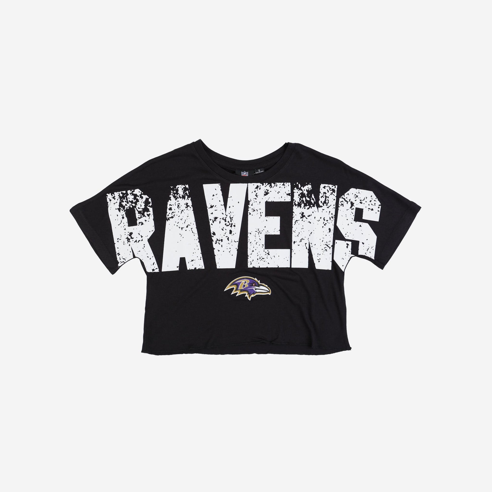 Baltimore Ravens Womens Petite Distressed Wordmark Crop Top FOCO S - FOCO.com