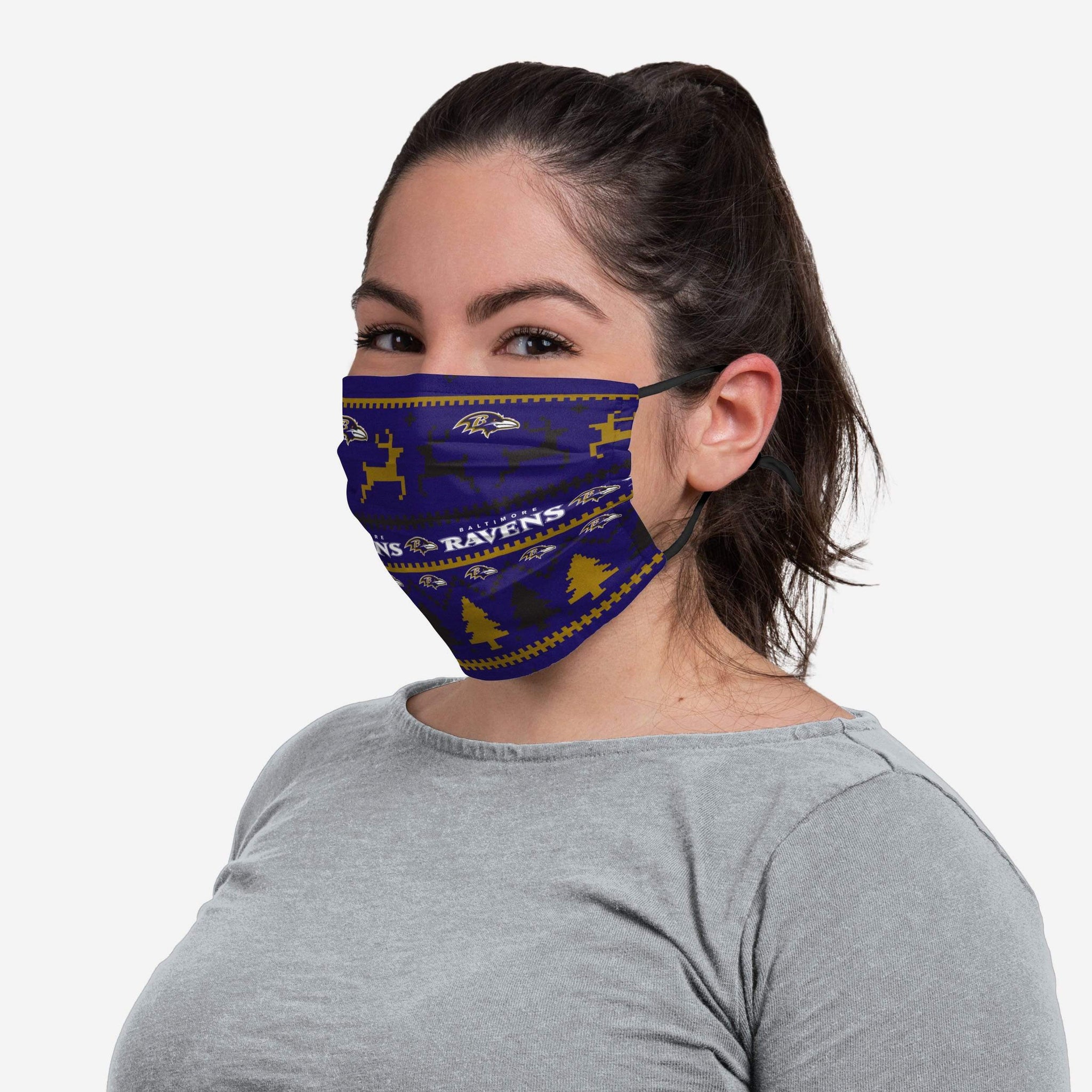Cover up while you represent your favorite team in this Baltimore Ravens Wordmark Holiday Adjustable face covering!