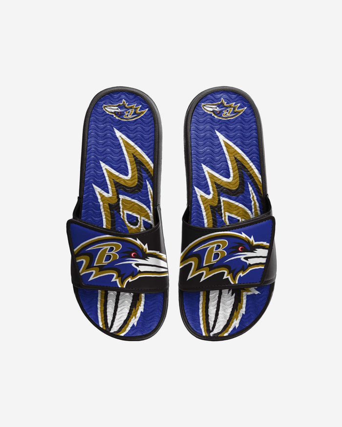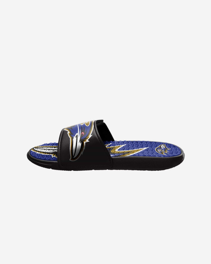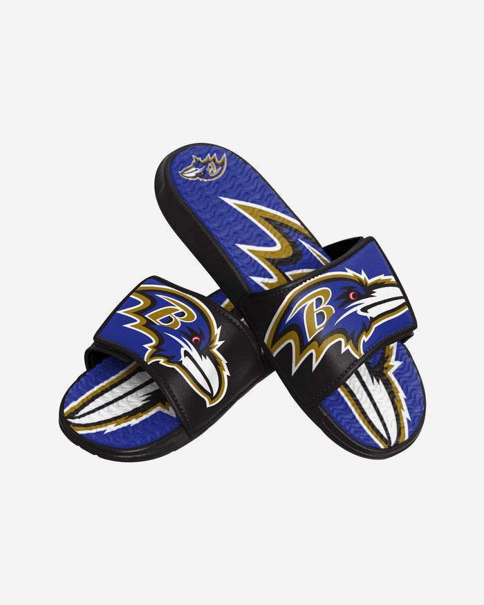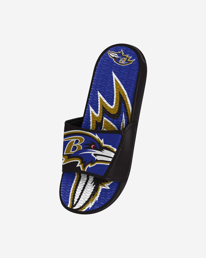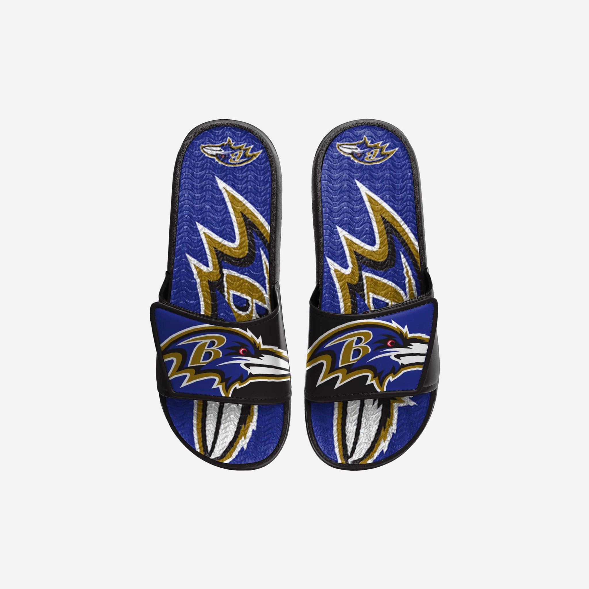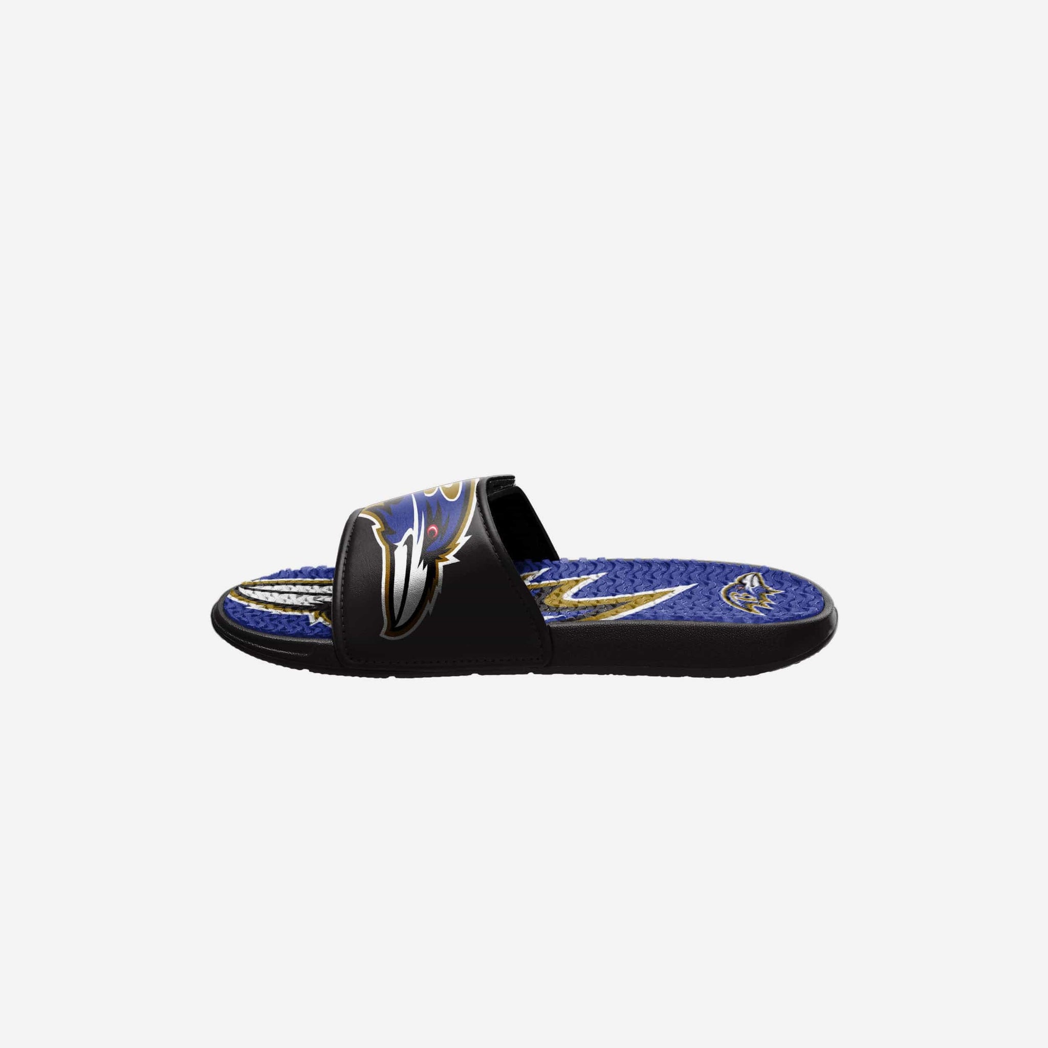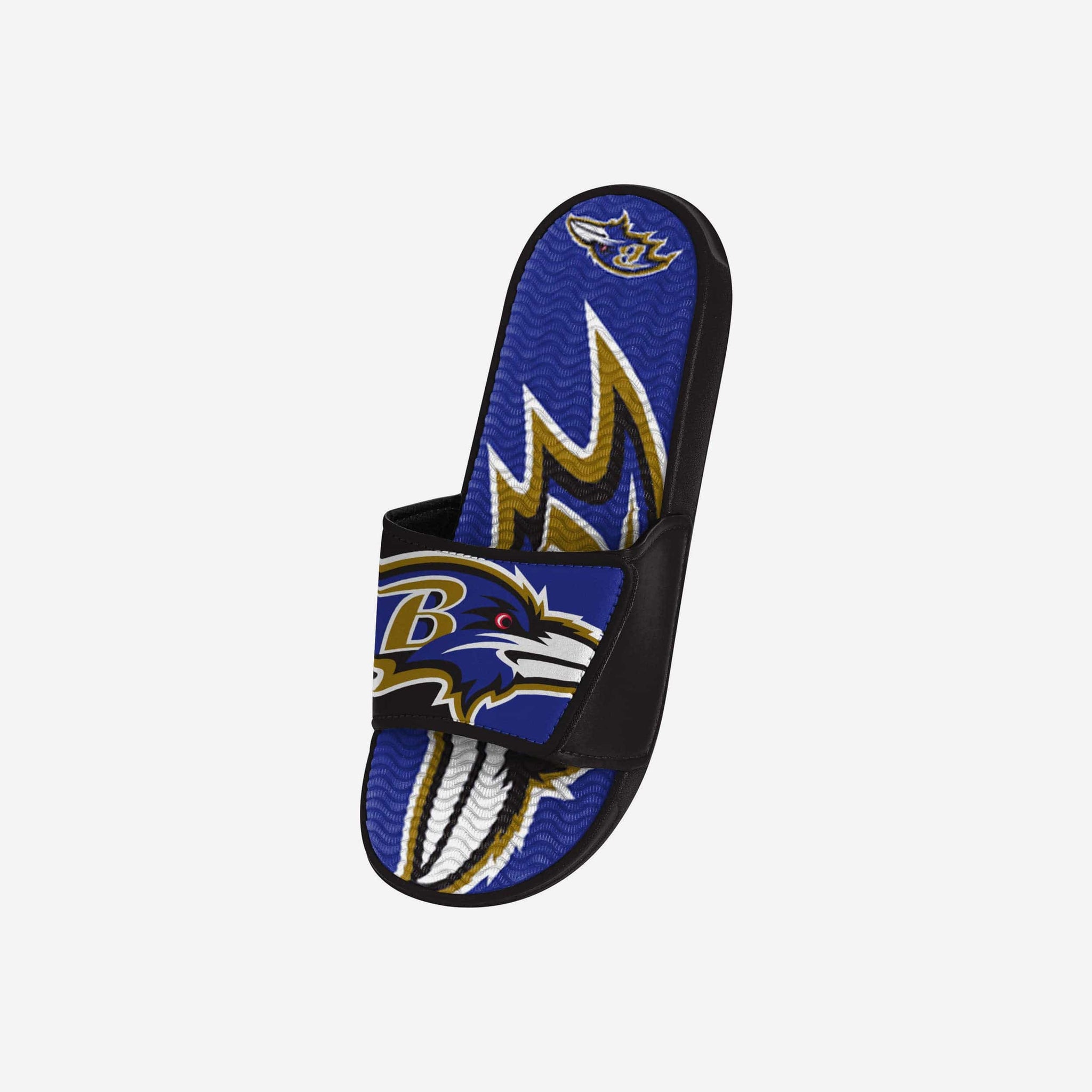 From stadium stands to sandy shores, your young fan will be ready to step INTO the comfort zone thanks to these Baltimore Ravens Youth Colorblock Big Logo Gel Slides!