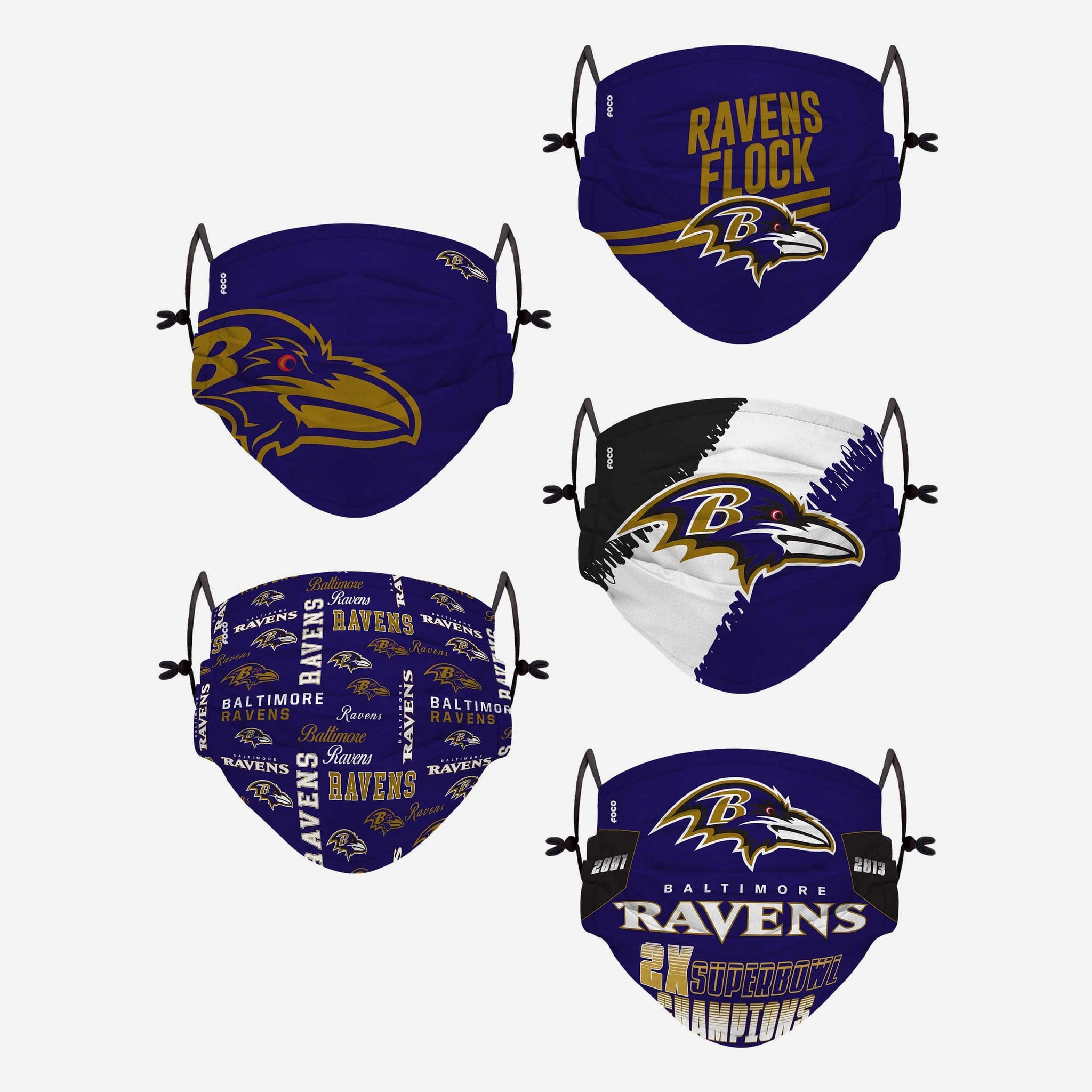 Baltimore Ravens Youth Rising Stars Adjustable 5 Pack Face Cover FOCO - FOCO.com