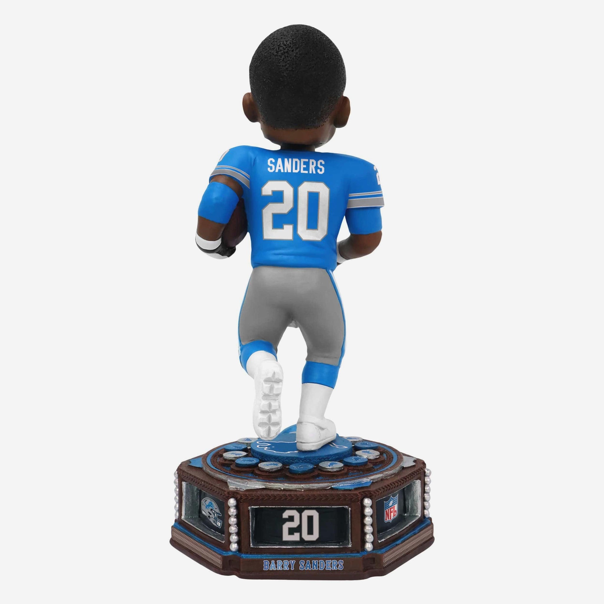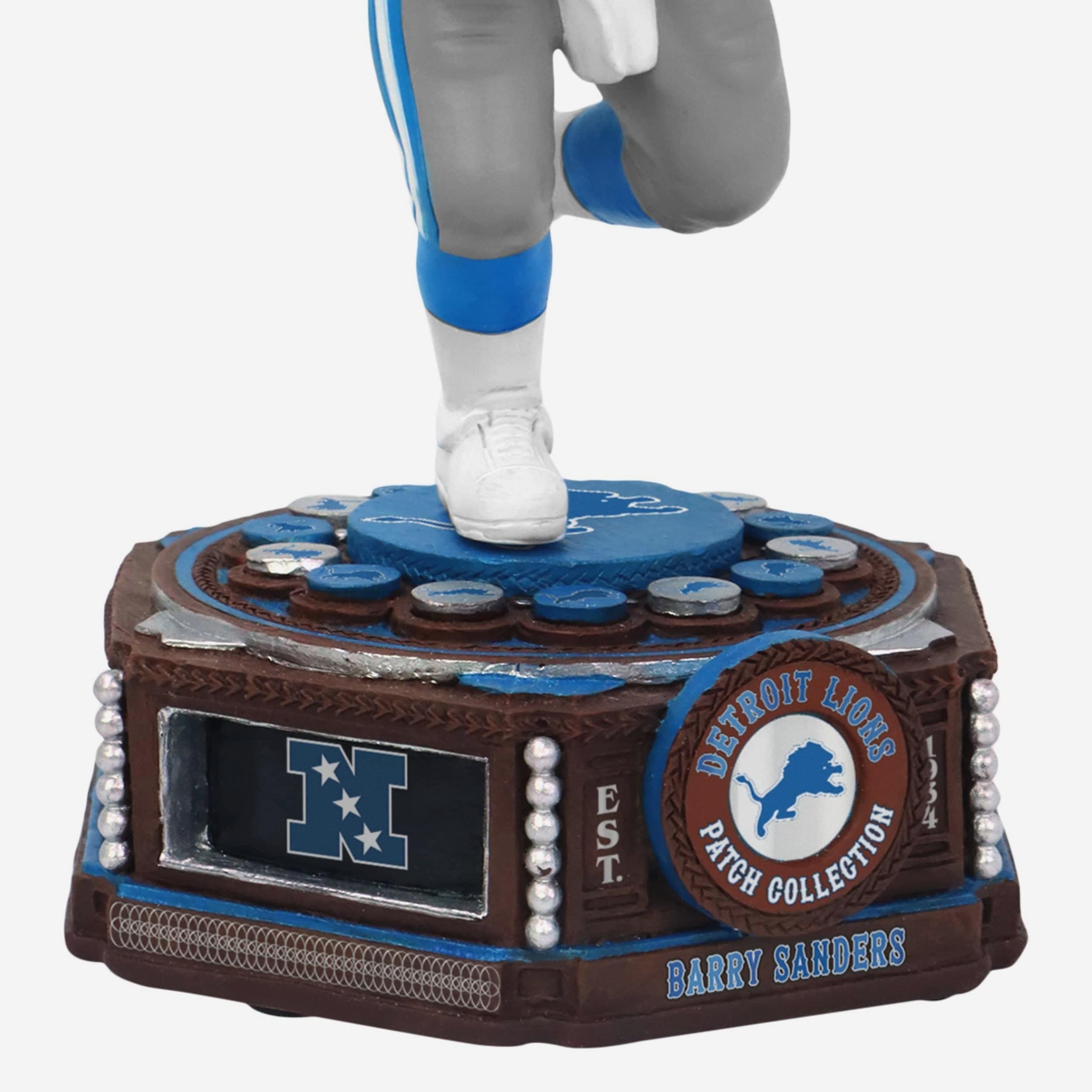 Get ready to patch together your team pride! Take a trip down memory lane with the Barry Sanders Detroit Lions Patch Collection Bobblehead.
