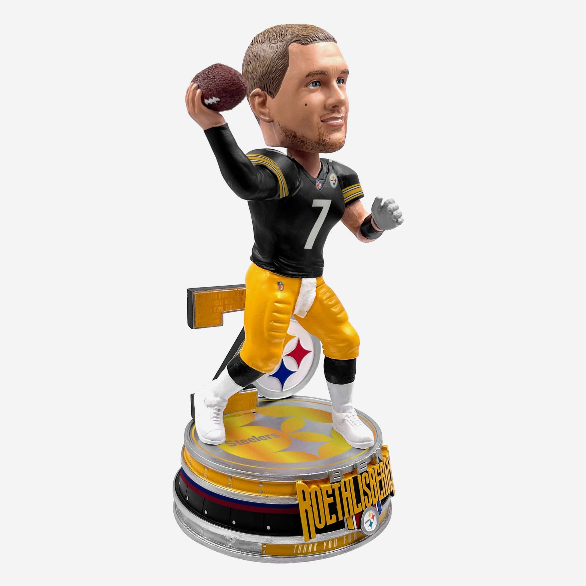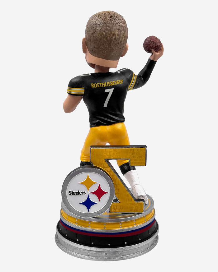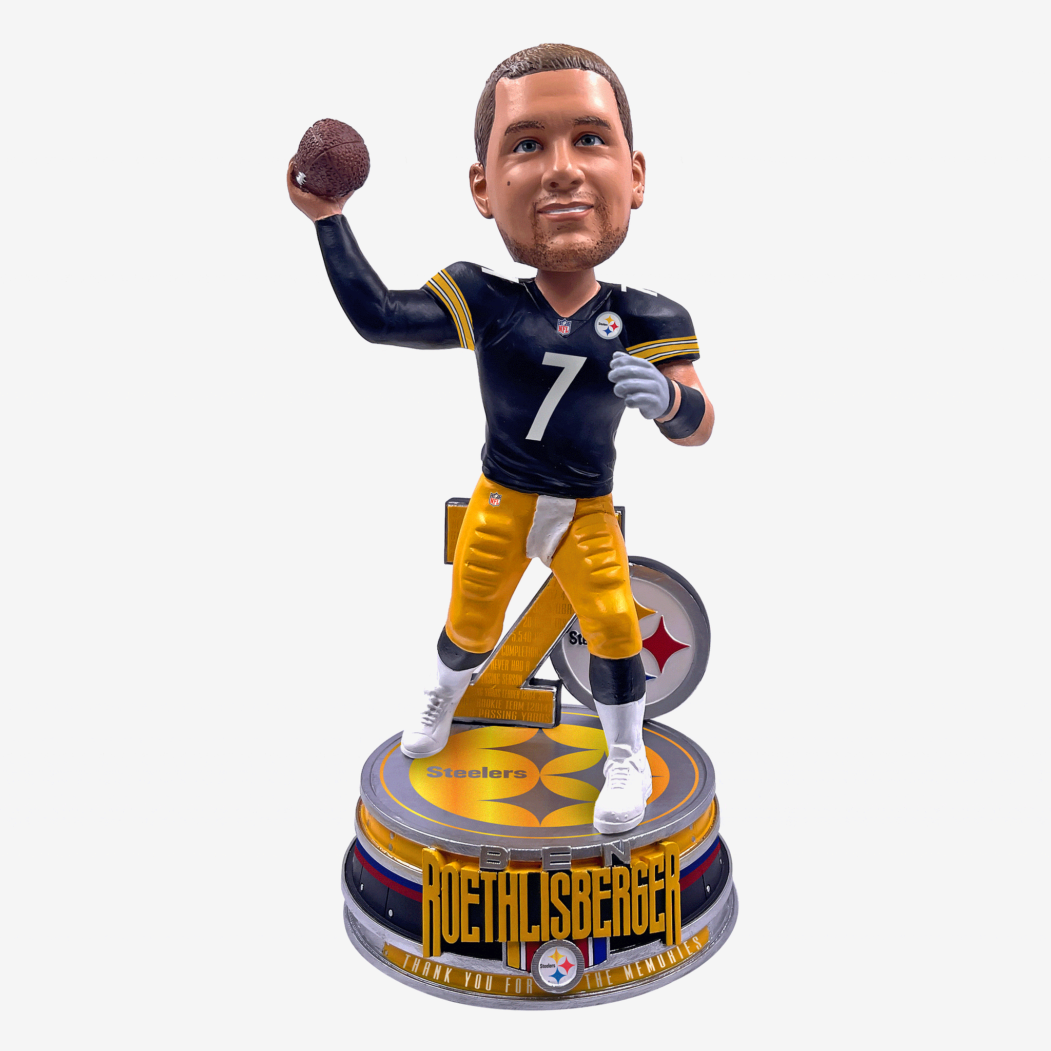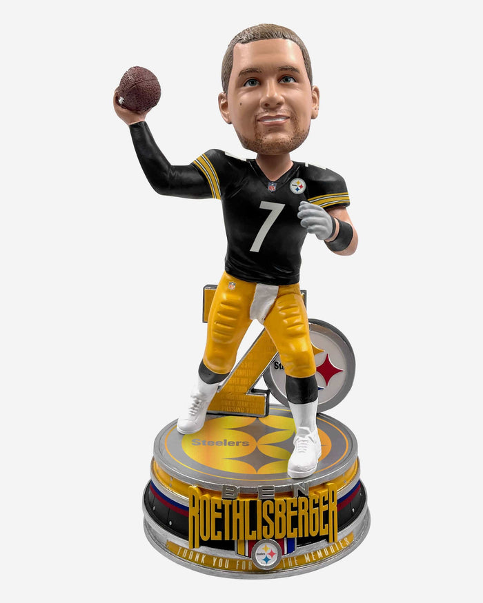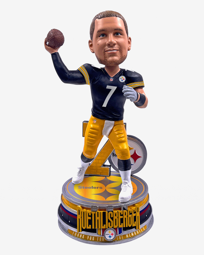 Big Ben put up some BIG numbers in his career. Celebrate those stats from the Steel City to your collection and get spinning and winning with this Ben Roethlisberger Pittsburgh Steelers Career Stats Spinning Bobblehead.