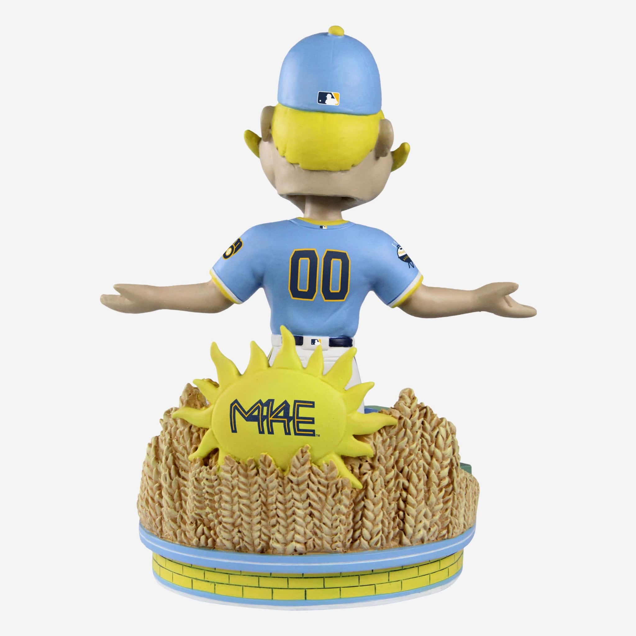 • Portrays Bernie Brewer posing in the Brewers’ alternate gameday uniform, inspired by the colors of the People’s Flag of Milwaukee and sunny days on Lake Michigan