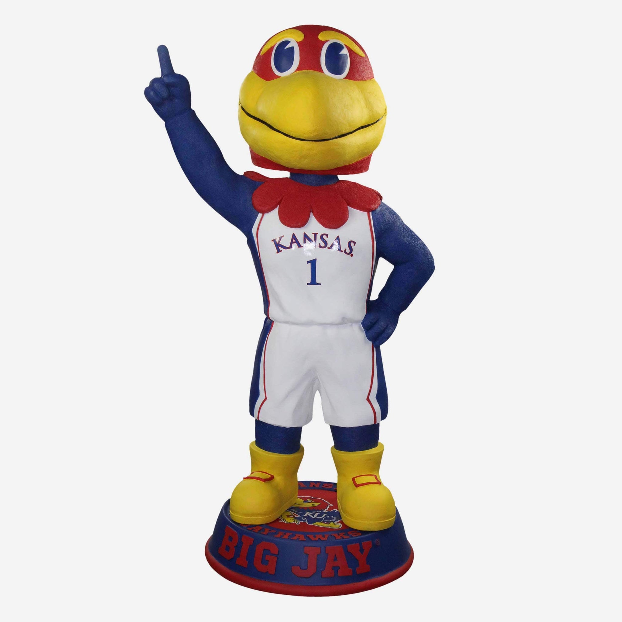 Go big or go home! Prove you're the biggest fan around by showing off the biggest bobblehead around - The Big Jay Kansas Jayhawks White Jersey 3 Ft. Mascot Bobblehead!