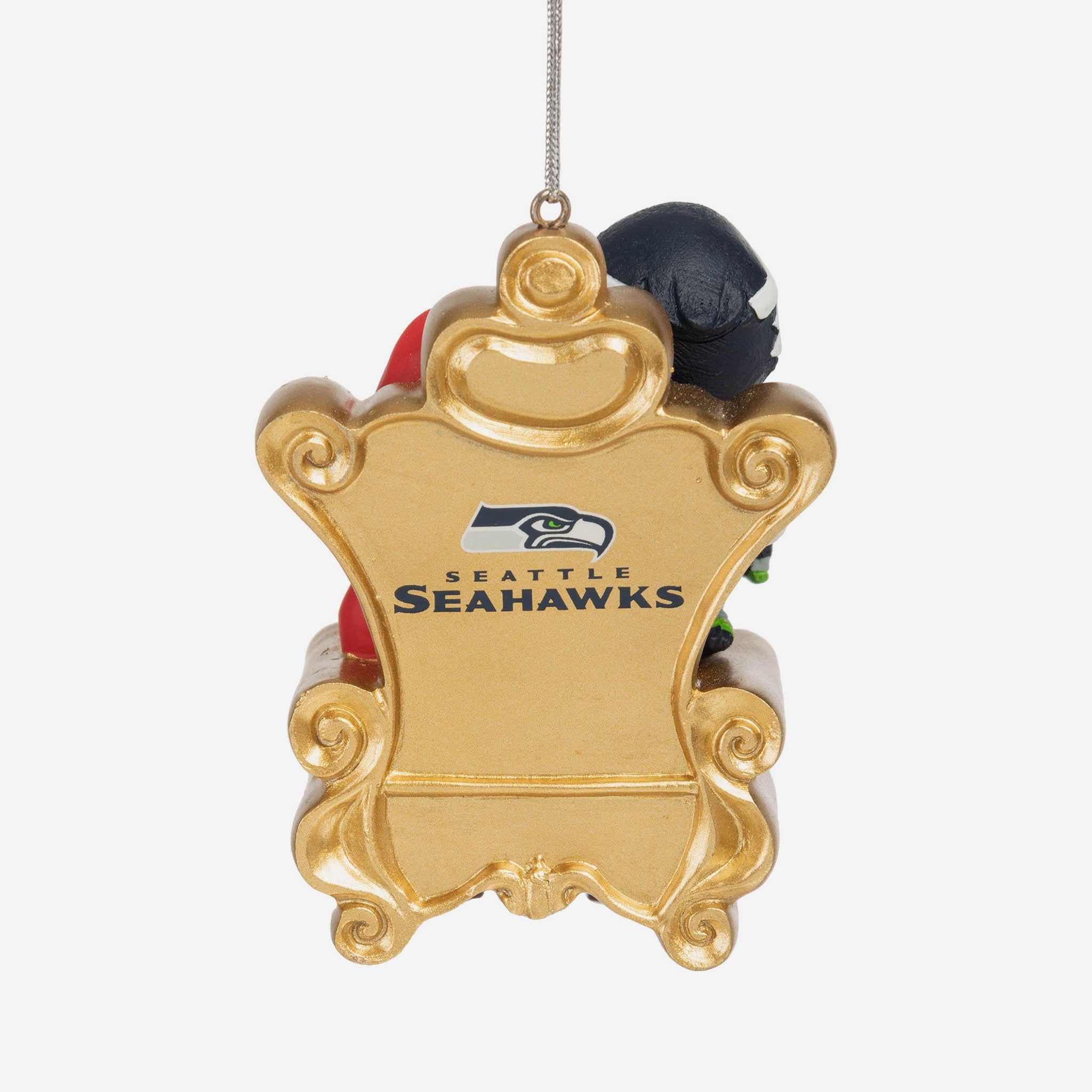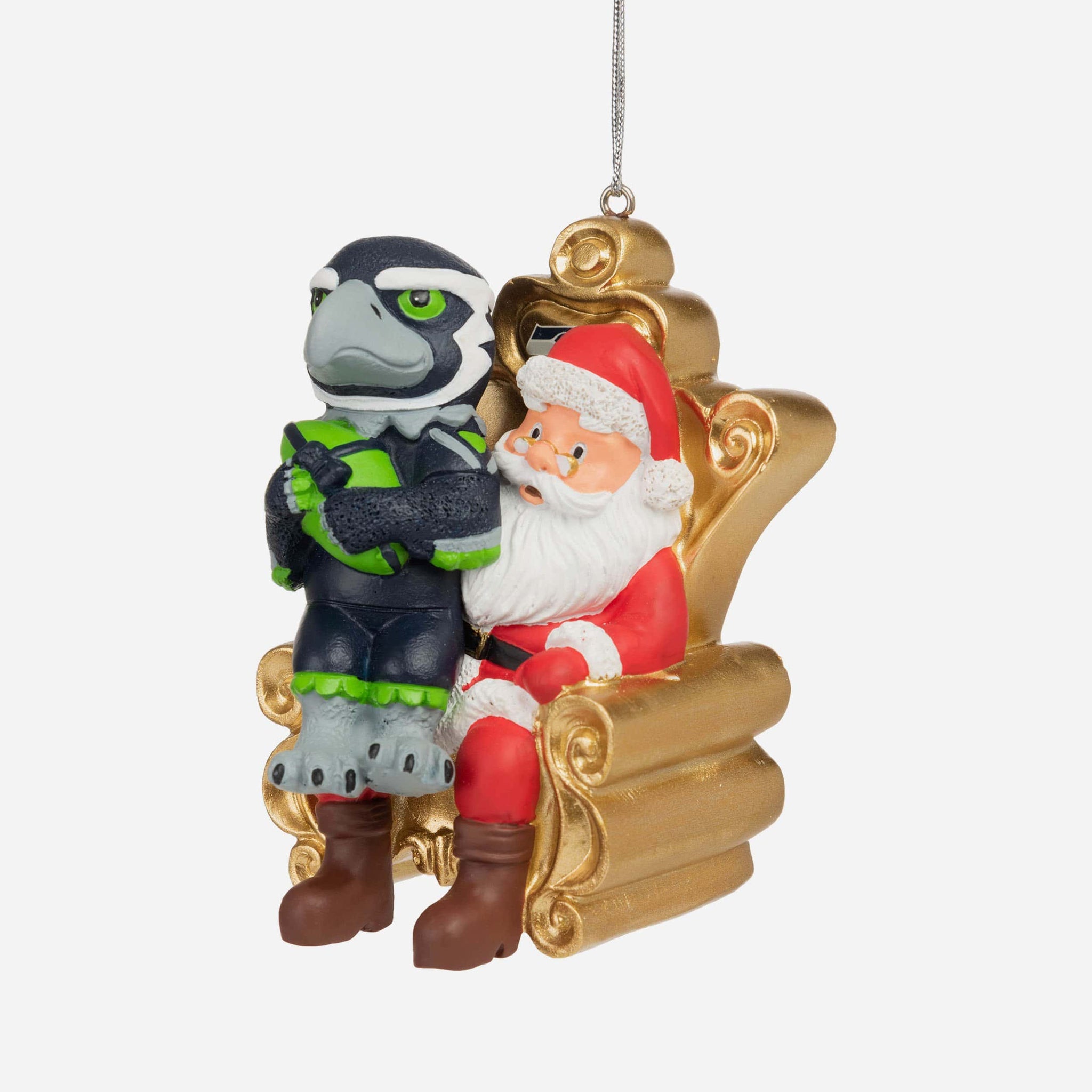 We hope the mascot's got his list ready, because he's paying St. Nick a visit in this Blitz Seattle Seahawks Mascot on Santa's Lap Ornament!