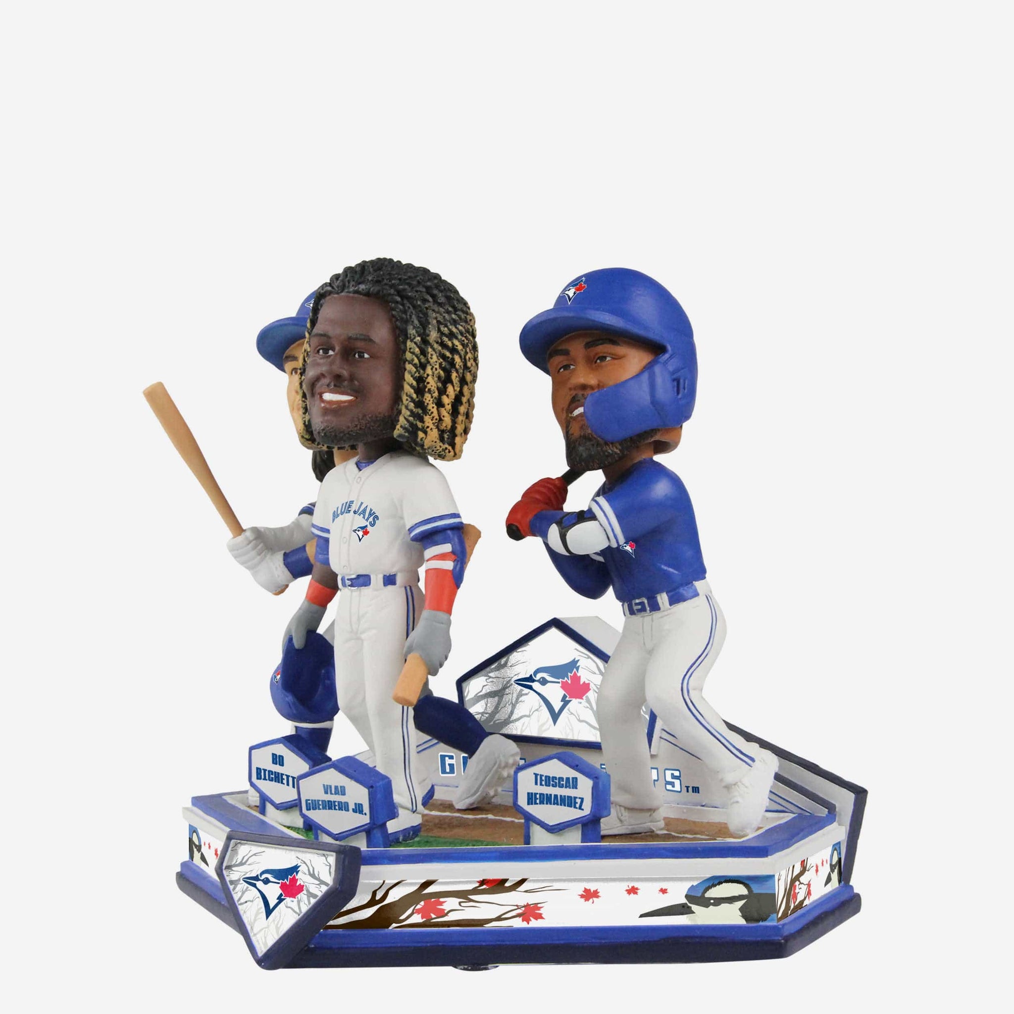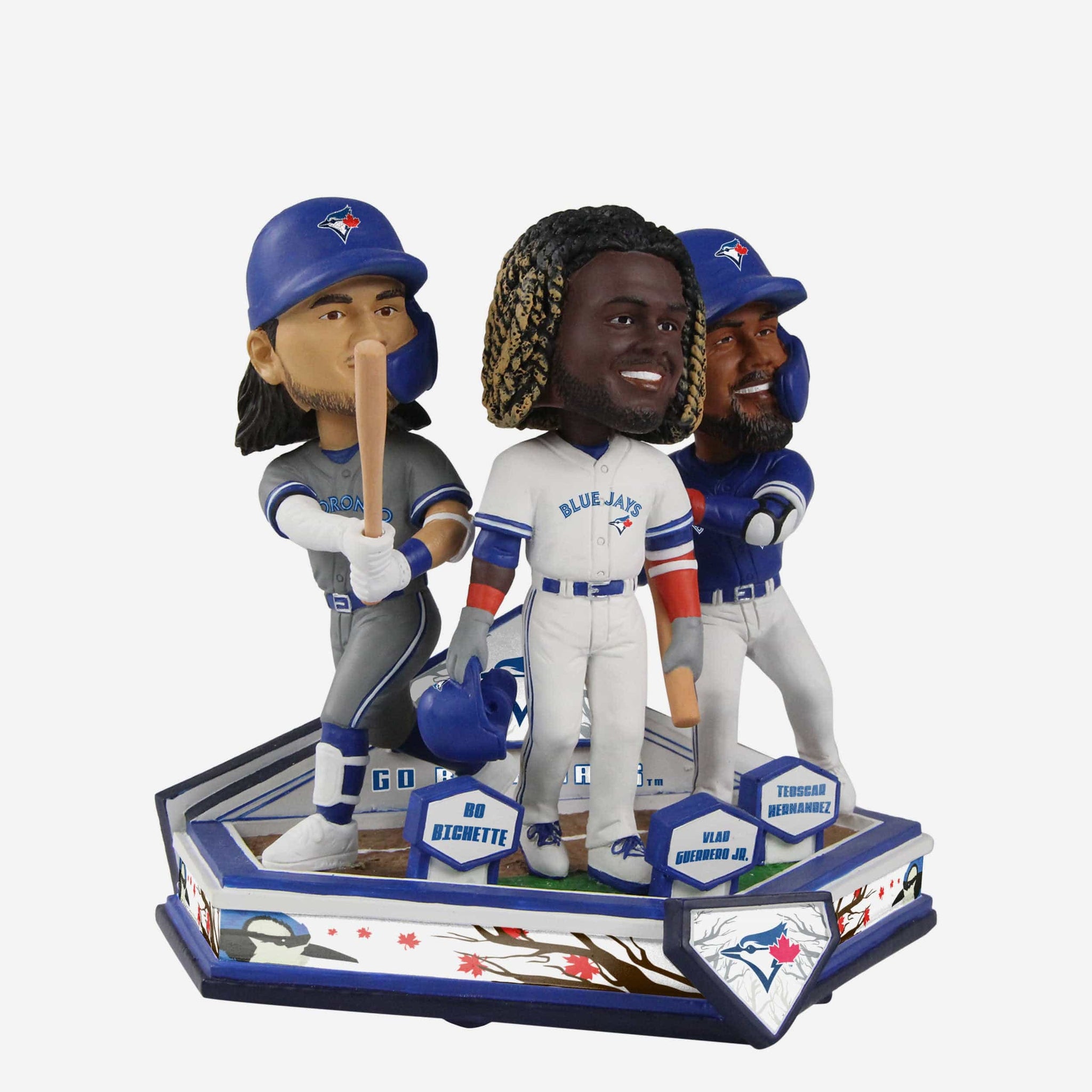 No, you're not seeing triple. Three of the Jays' brightest stars really are here in one bobblehead. Turn a triple play of awesomeness with this Bo Bichette & Vladimir Guerrero Jr. & Teoscar Hernandez Toronto Blue Jays Triple Bobblehead.