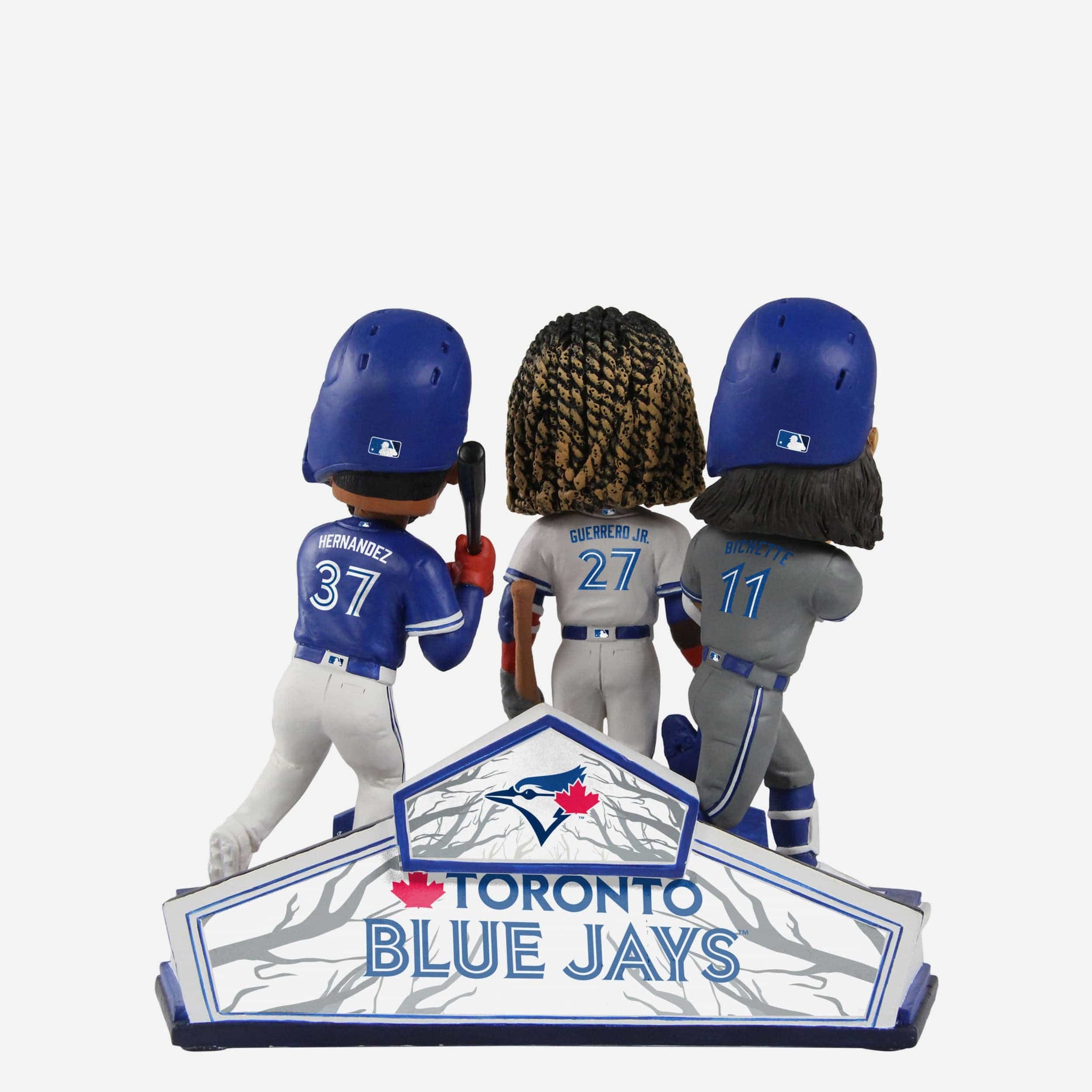 - Portrays Bichette, Guerrero Jr., and Hernandez wearing their gameday uniforms in action poses for a triple dose of greatness
