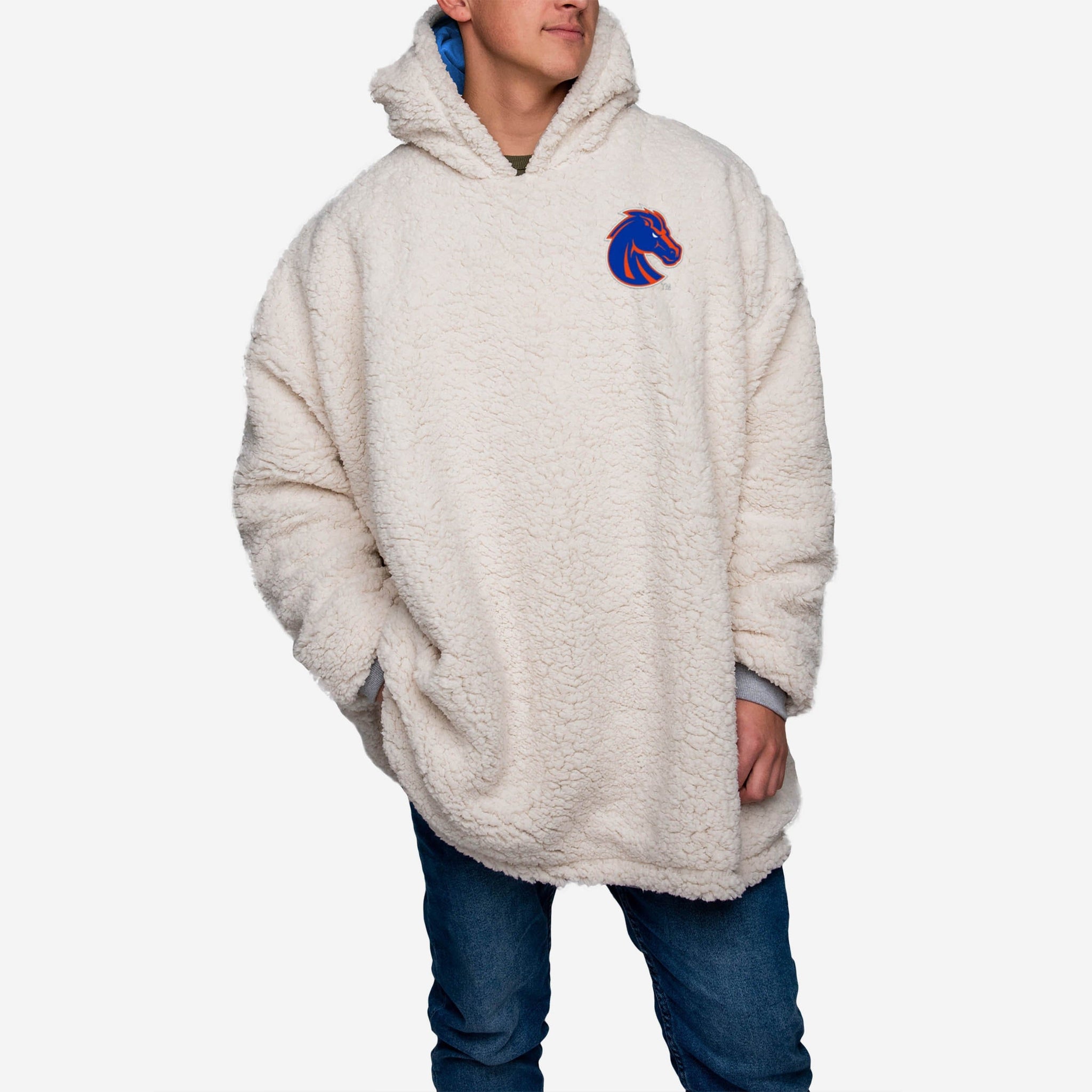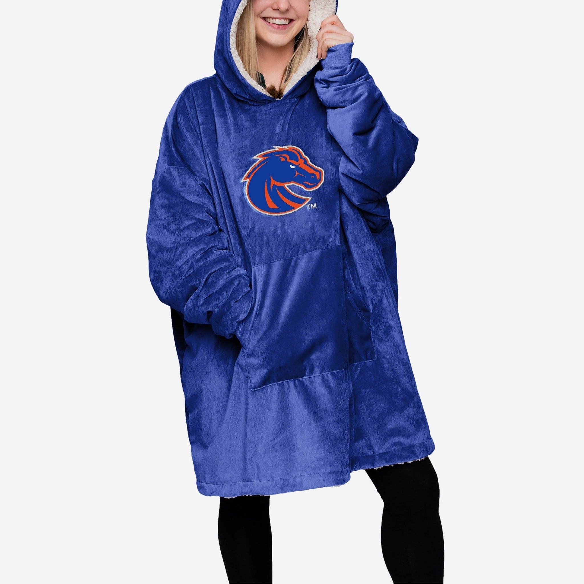 Choosing between showing off your team spirit, looking good, and enjoying some elite relaxation is a tough decision. Borderline impossible. Good news. You don't have to choose. Because you can enjoy that triple threat of fan awesome when you rock this Boise State Broncos Reversible Big Logo Hoodeez.