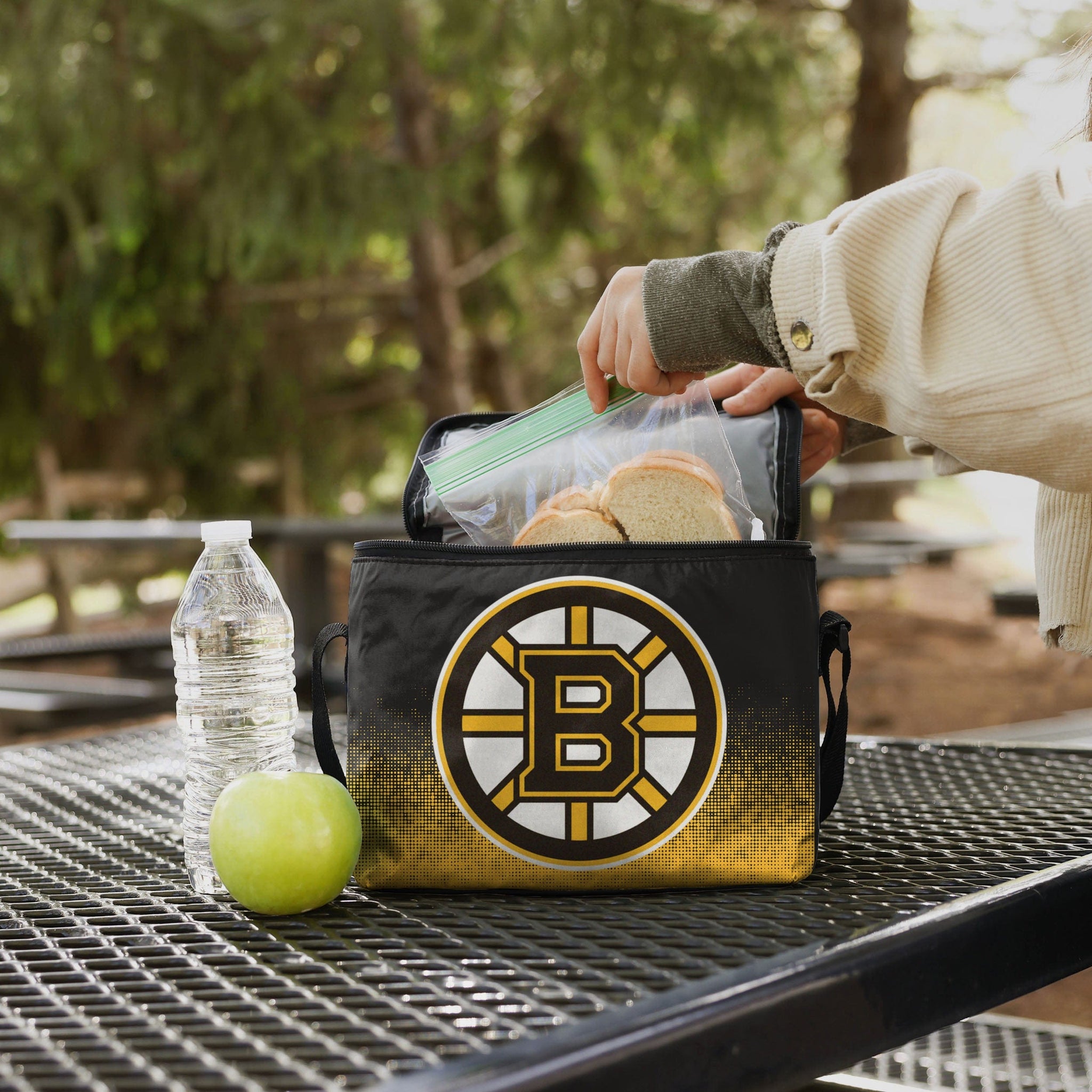 There are two things you never show up to a tailgate without: your team spirit, and the drinks. This Boston Bruins Big Logo Gradient 6 Pack Cooler has you covered for both. Big enough to store a 6-pack of awesomeness.