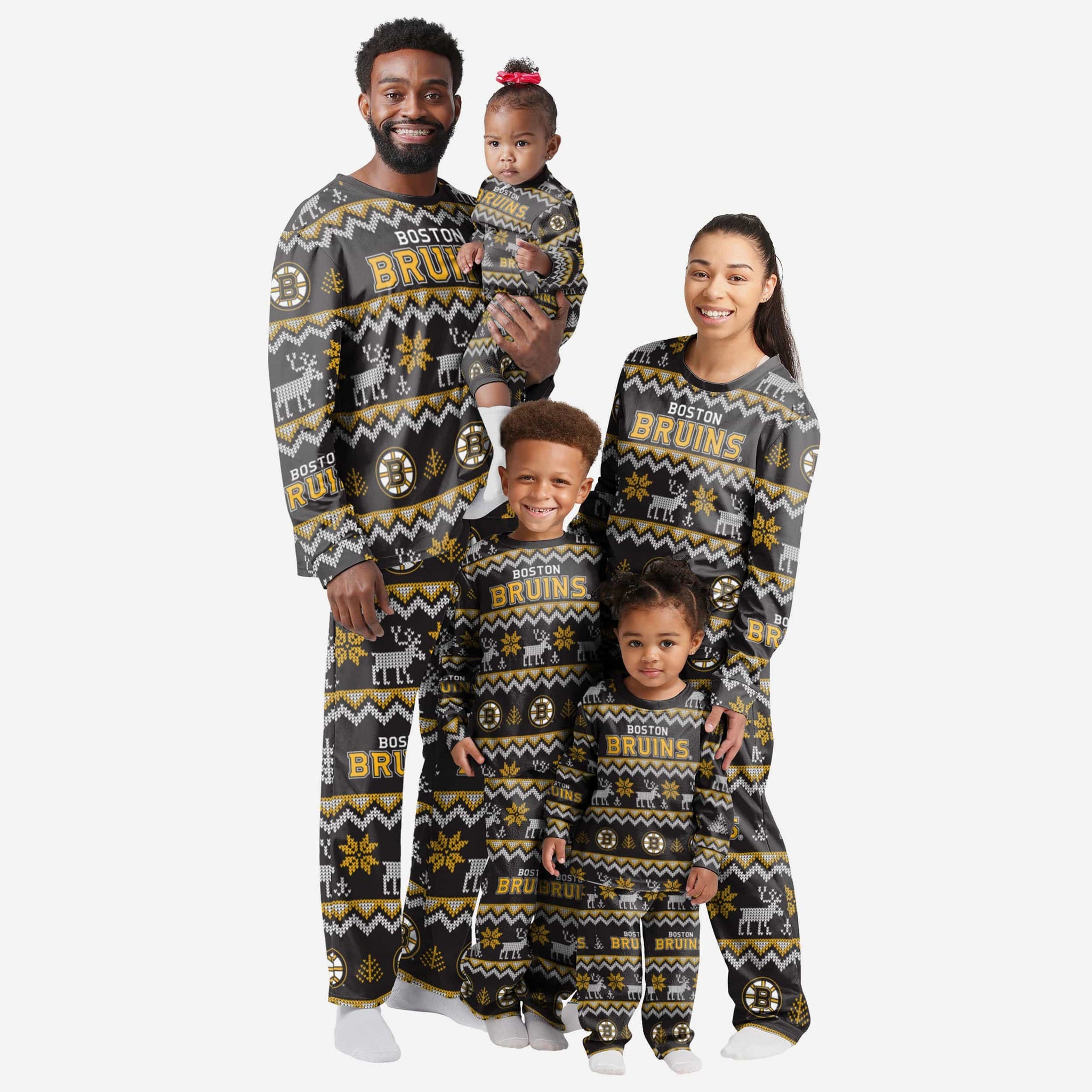 Get your young fan started early this holiday season in these Boston Bruins Infant Ugly Pattern Family Holiday Pajamas! Your baby will absolutely love these matching Christmas pajamas! Make sure your infant enjoys sweet dreams filled with holiday joy by having them sleep in infant pajamas. Don’t forget to take your holiday photo with the whole family wearing matching Christmas pajamas!