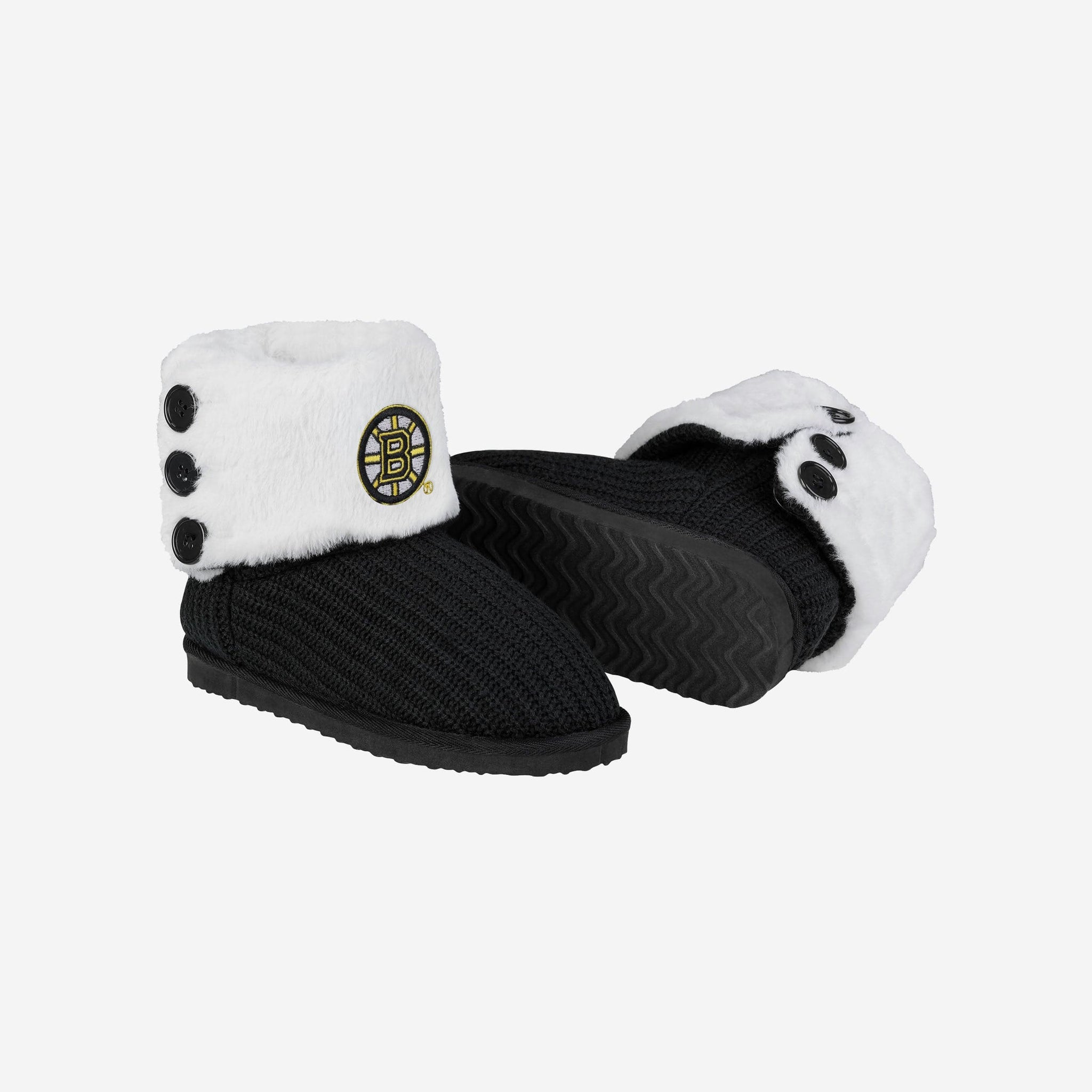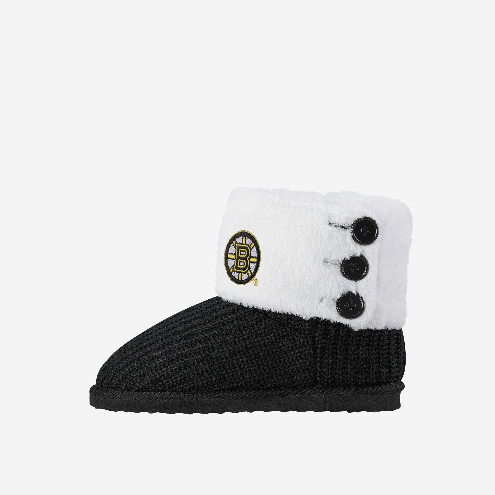 These Boston Bruins Knit High End Button Boot Slippers are perfect for rocking your team spirit from head to toe, or keeping yourself warm and comfortable while you sneak downstairs for that secret midnight snack. No judgment here.