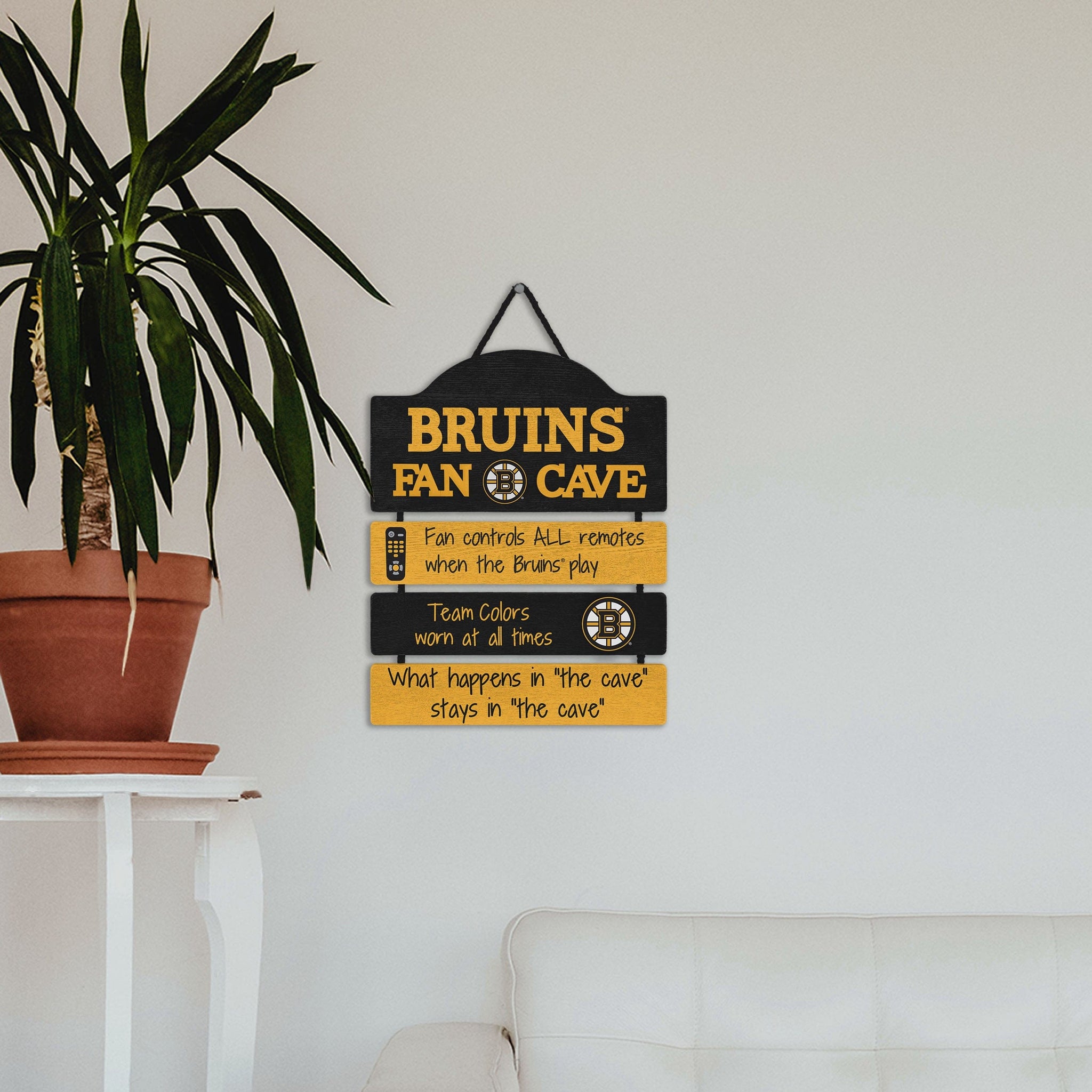 So, you're hosting the big watch party, and want to make sure you've decorated enough to impress your fellow fans. We've got you covered. This Boston Bruins Mancave Sign lets everyone know who the fan in charge is, and gives your home field plenty of advantage.