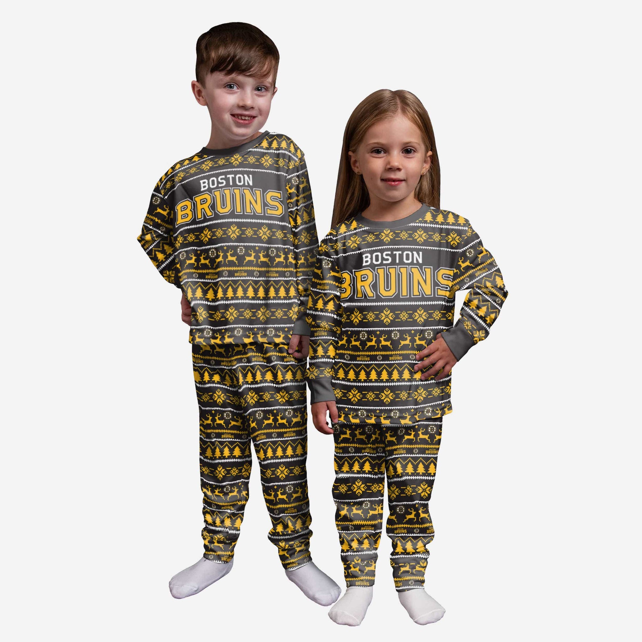 Get some matching family pajamas to turn your good night's sleep into a great night's sleep. You won't want to miss these kids' team pajamas. These youth PJ's are comfortable and show off your team spirit in the form of some sweet youth jammies. Introducing Boston Bruins Toddler Family Holiday Pajamas. Don't forget to take your holiday photo with the family wearing matching Christmas pajamas.