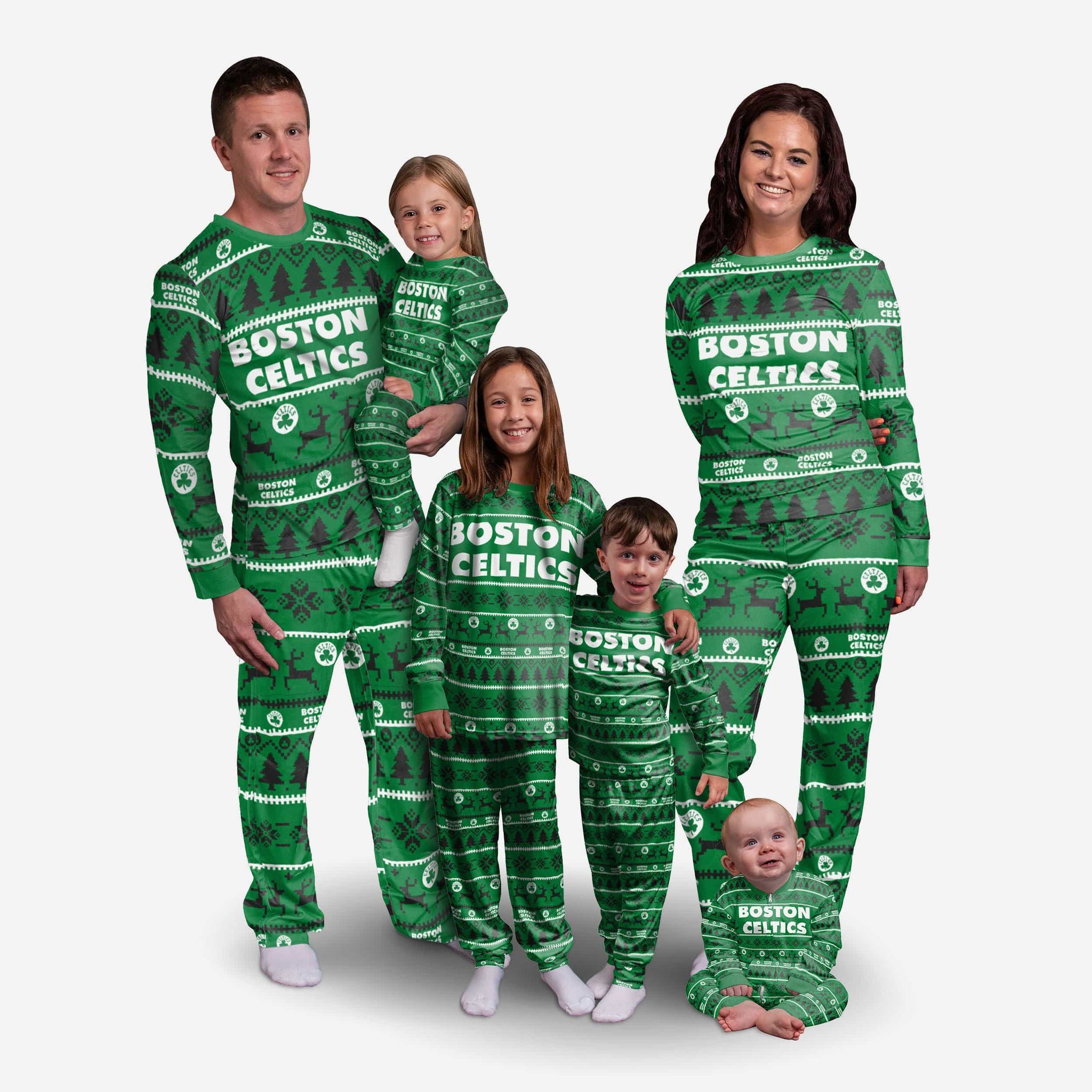Get some matching family pajamas to turn your good night's sleep into a great night's sleep. You won't want to miss these kids' team pajamas. These youth PJ's are comfortable and show off your team spirit in the form of some sweet youth jammies. Introducing Boston Celtics Youth Family Holiday Pajamas. Don't forget to take your holiday photo with the family wearing matching Christmas pajamas.