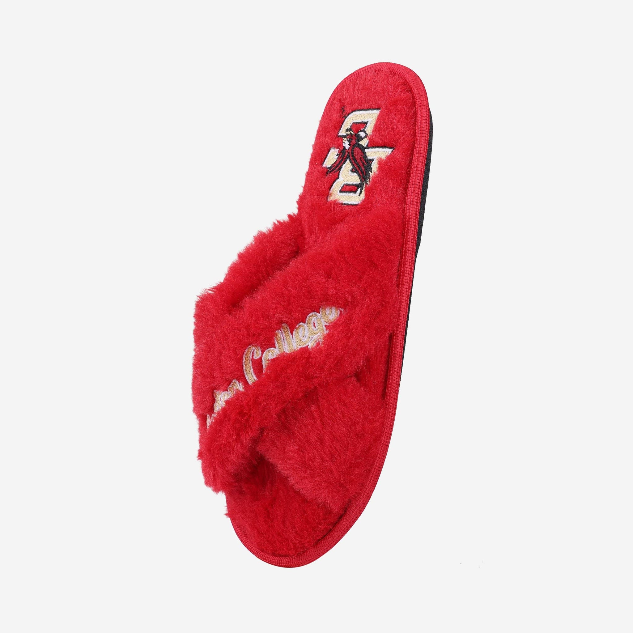 Boston College Eagles Womens Script Wordmark Fur Cross Slide